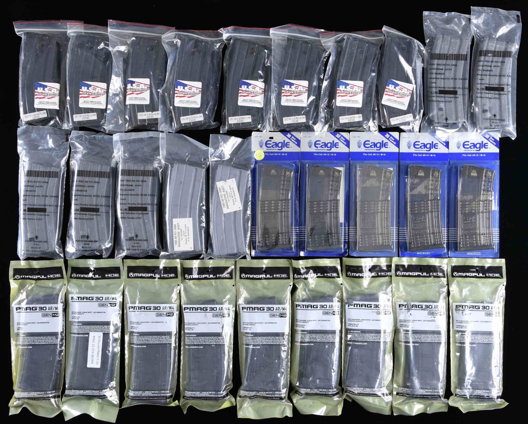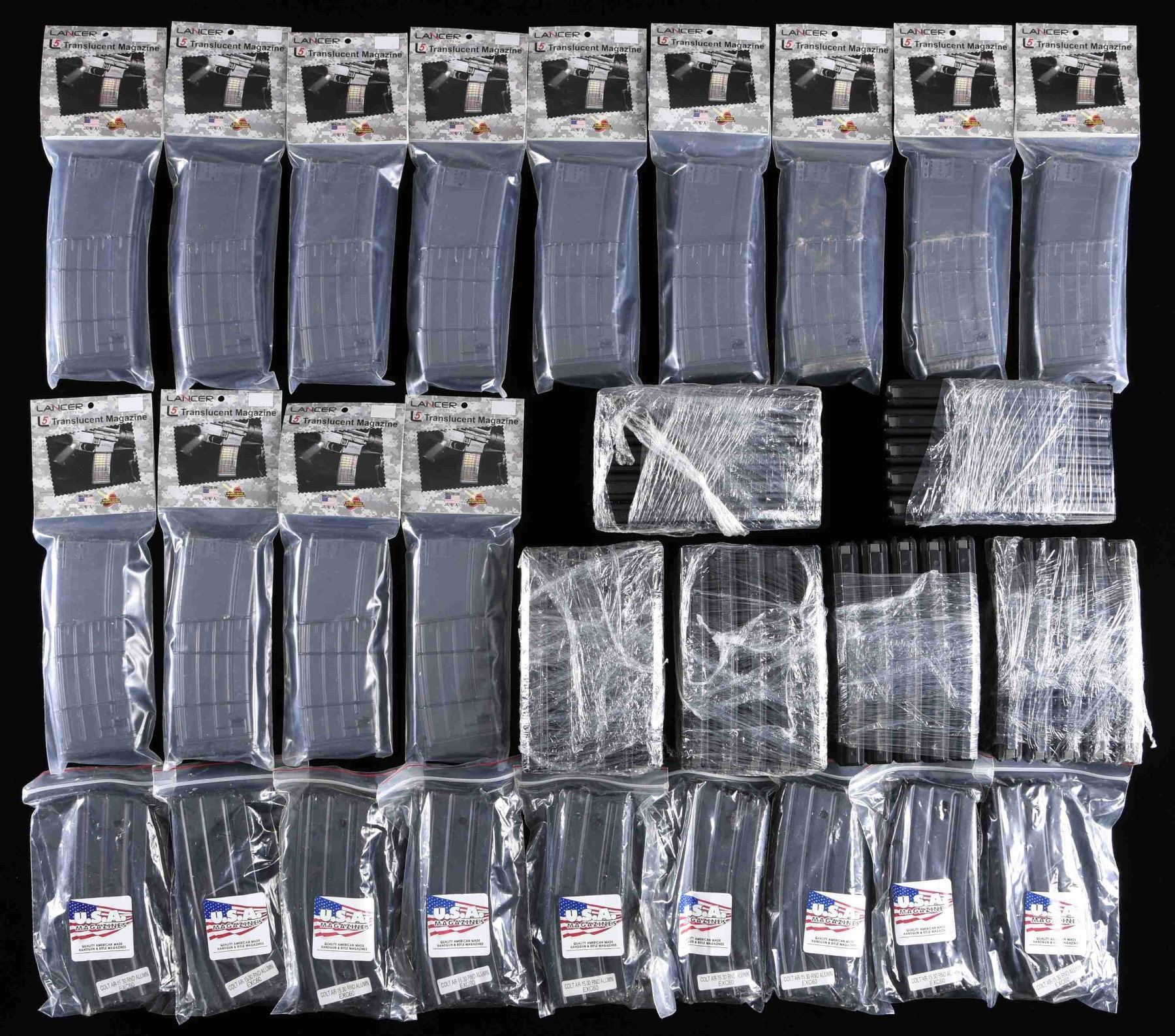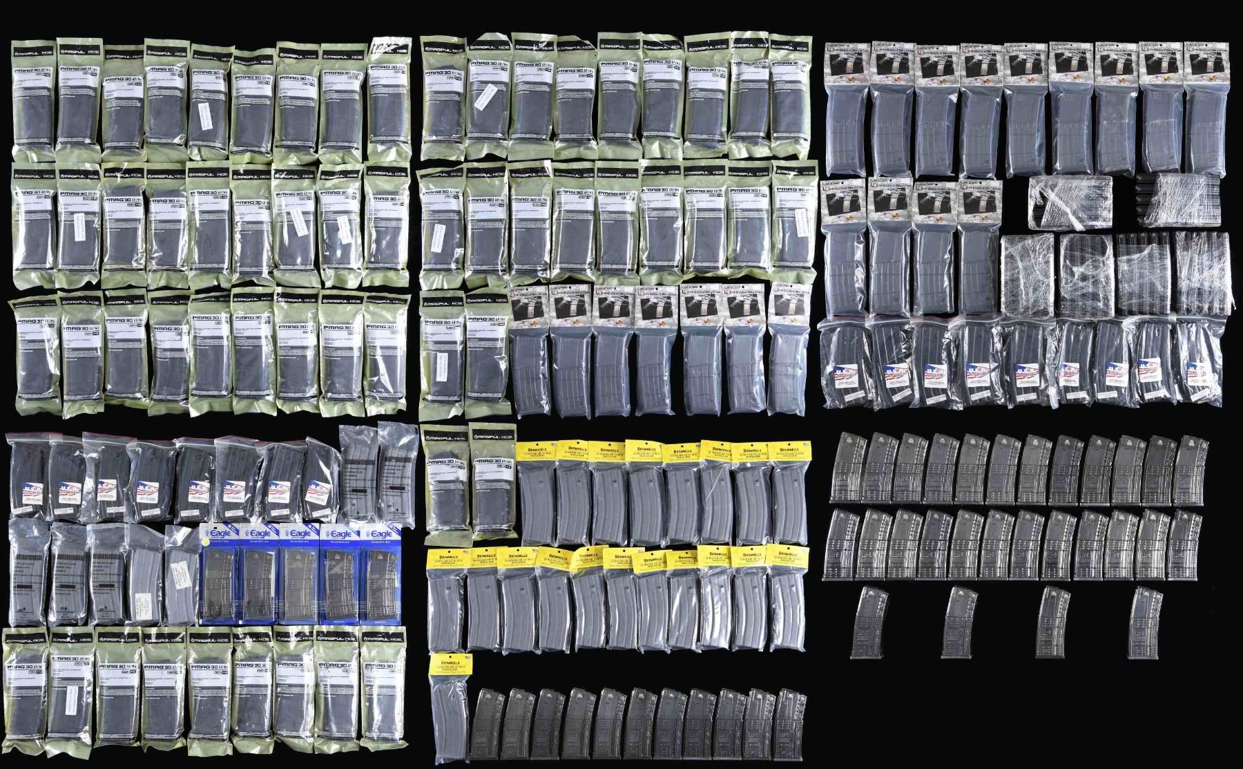 MAGAZINES. Large lot of approx. 194 assorted AR-15 mags. Mags. are from a variety of mfgs. and are comprised of either aluminum or polymer. CONDITION: very good to excellent, with many mags. remaining in their original factory packaging. (02-24272-2/MLW) $1,000-1,500.