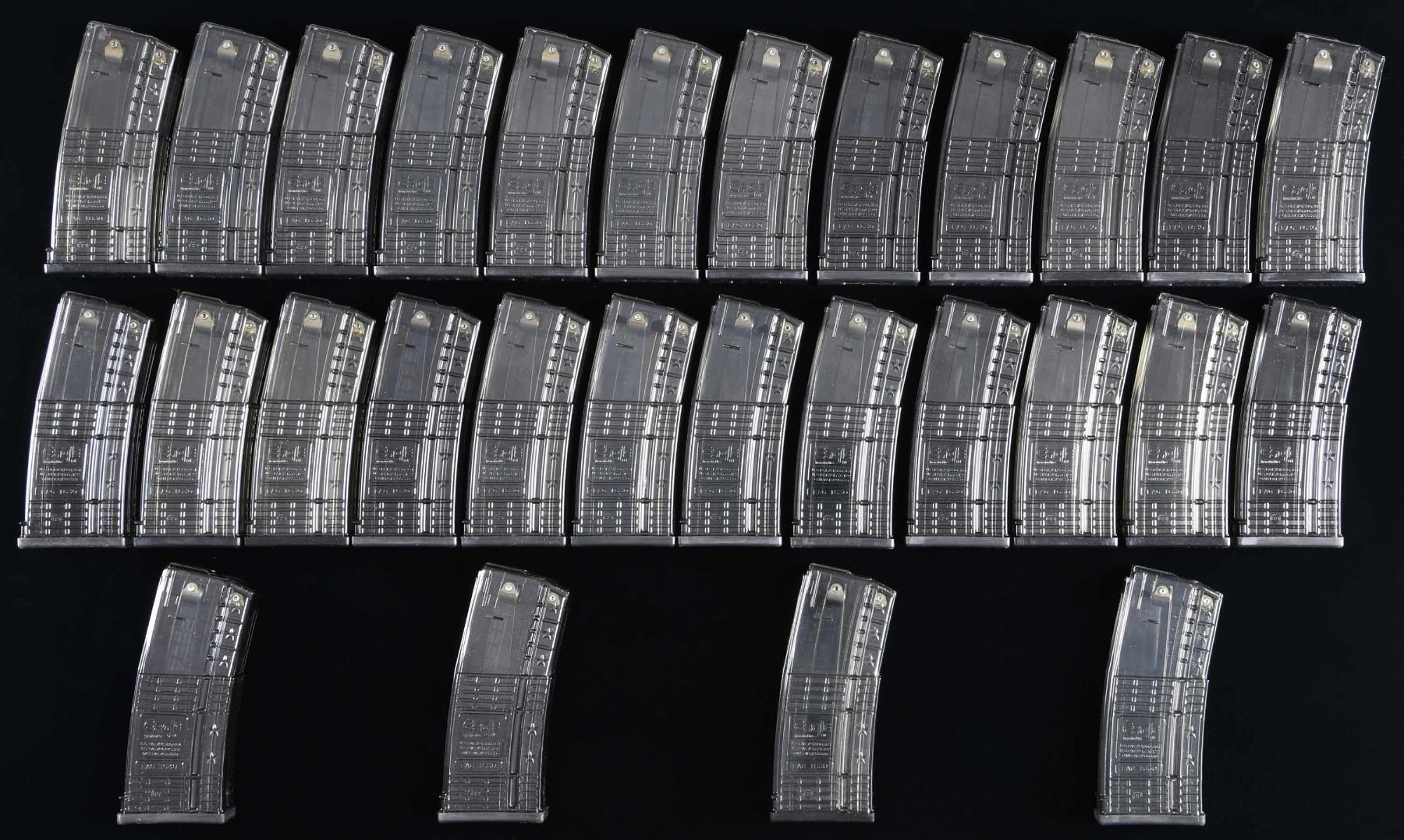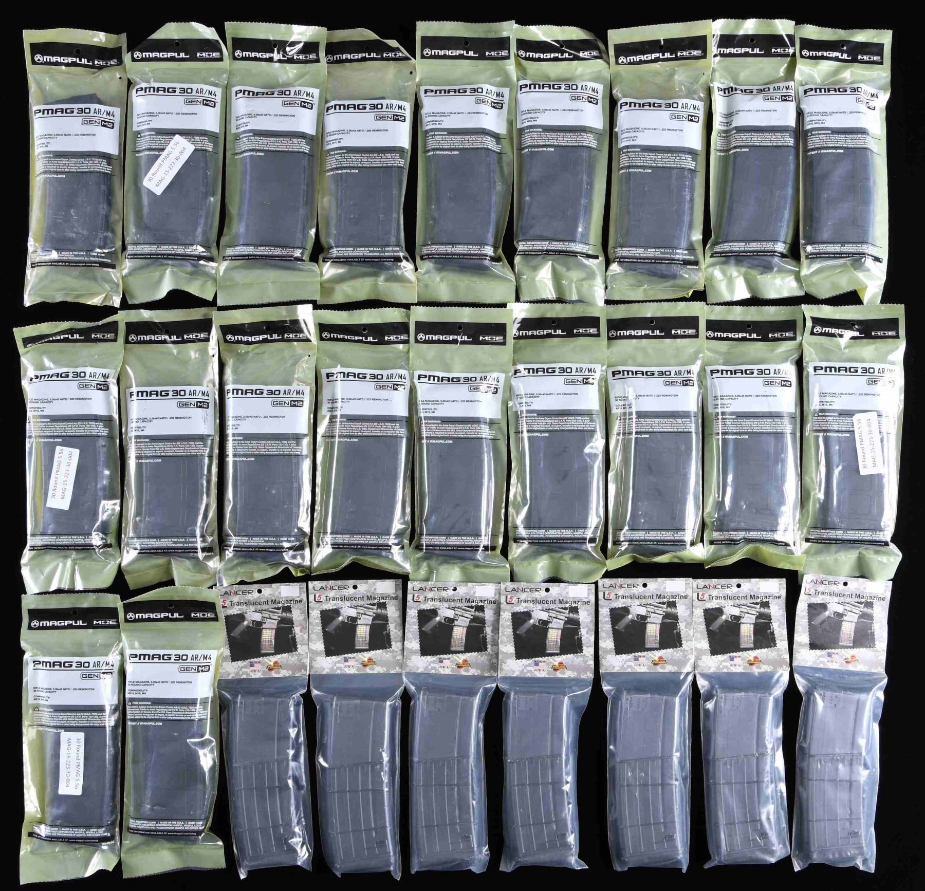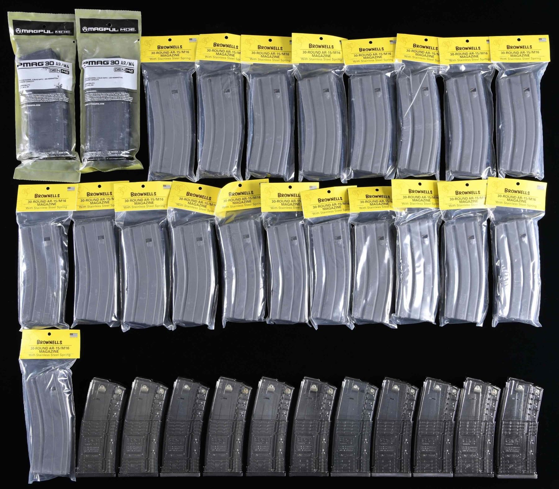 MAGAZINES. Large lot of approx. 194 assorted AR-15 mags. Mags. are from a variety of mfgs. and are comprised of either aluminum or polymer. CONDITION: very good to excellent, with many mags. remaining in their original factory packaging. (02-24272-2/MLW) $1,000-1,500.