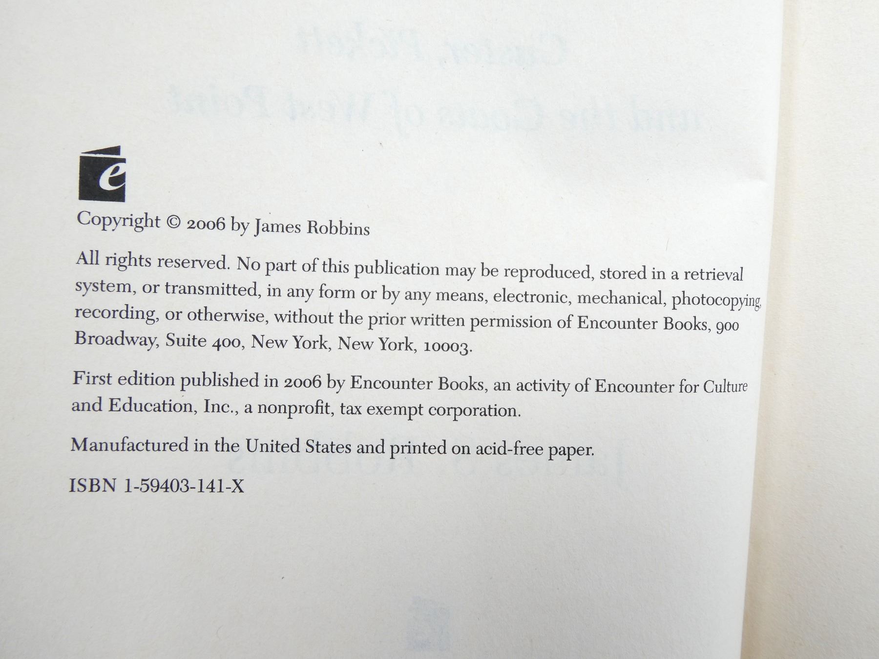 (1) BY JAMES S. ROBBINS, HARD COVER WITH DUST COVER, ISBN: 978-1-59403-141-0. SEE PHOTOS.