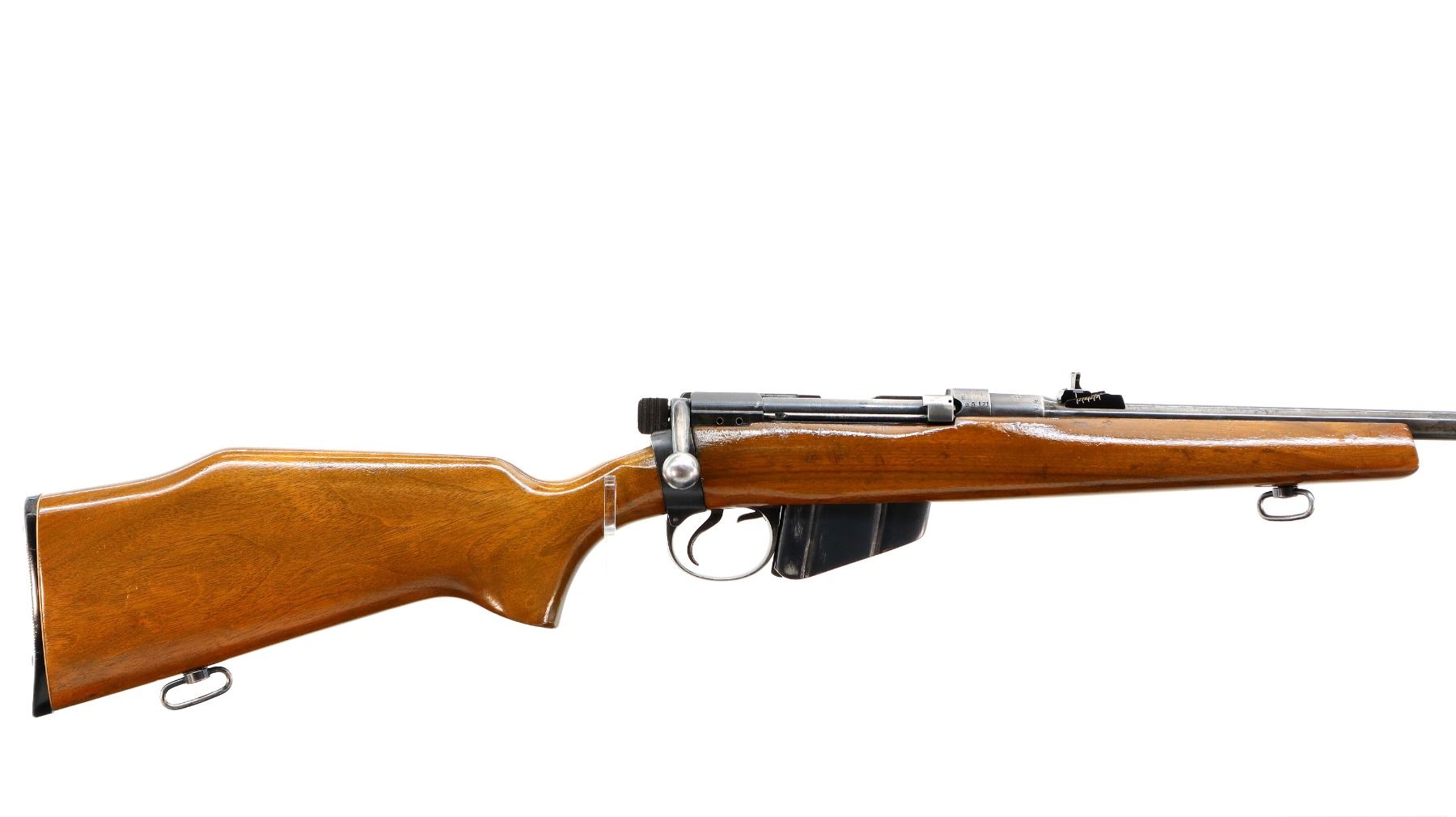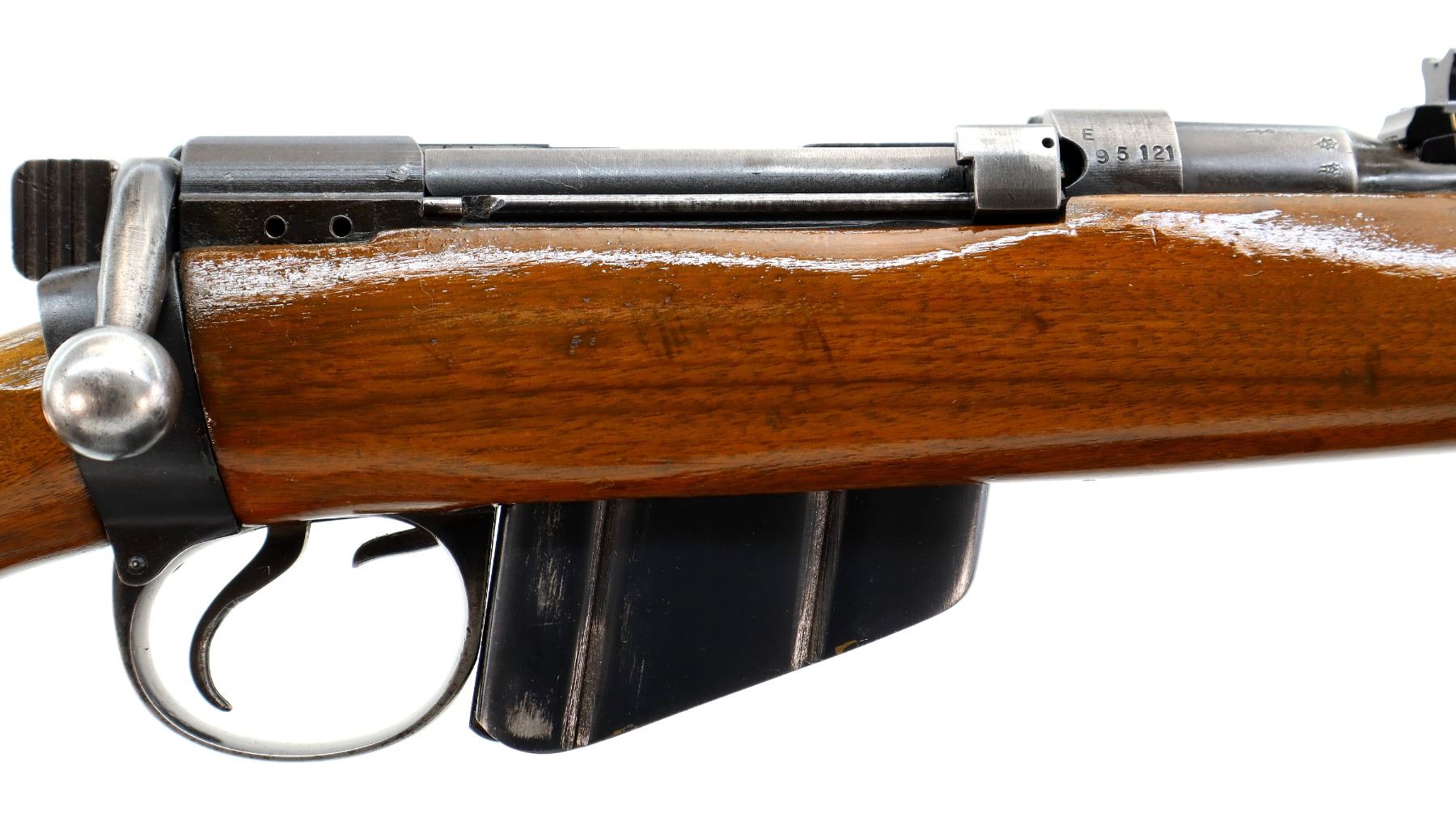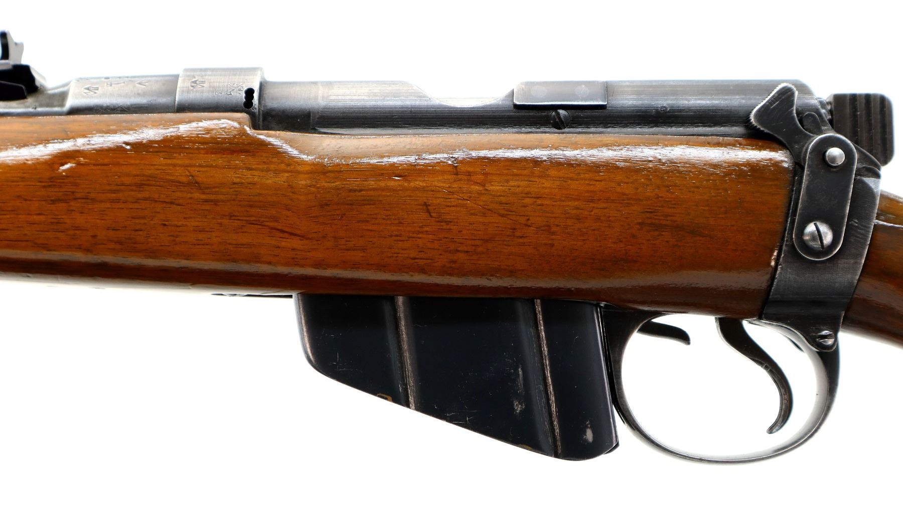 Main Description: Manufactured by Lithgow 1944, bolt matches. Blade front sight with ramp, adjustable u notched rear sight, receiver bridge removed, right side drilled and tapped with no plug screws installed. Two piece sporterized wood stocks, pistol grip, raised comb, grooved black polymer butt plate, sling swivels.