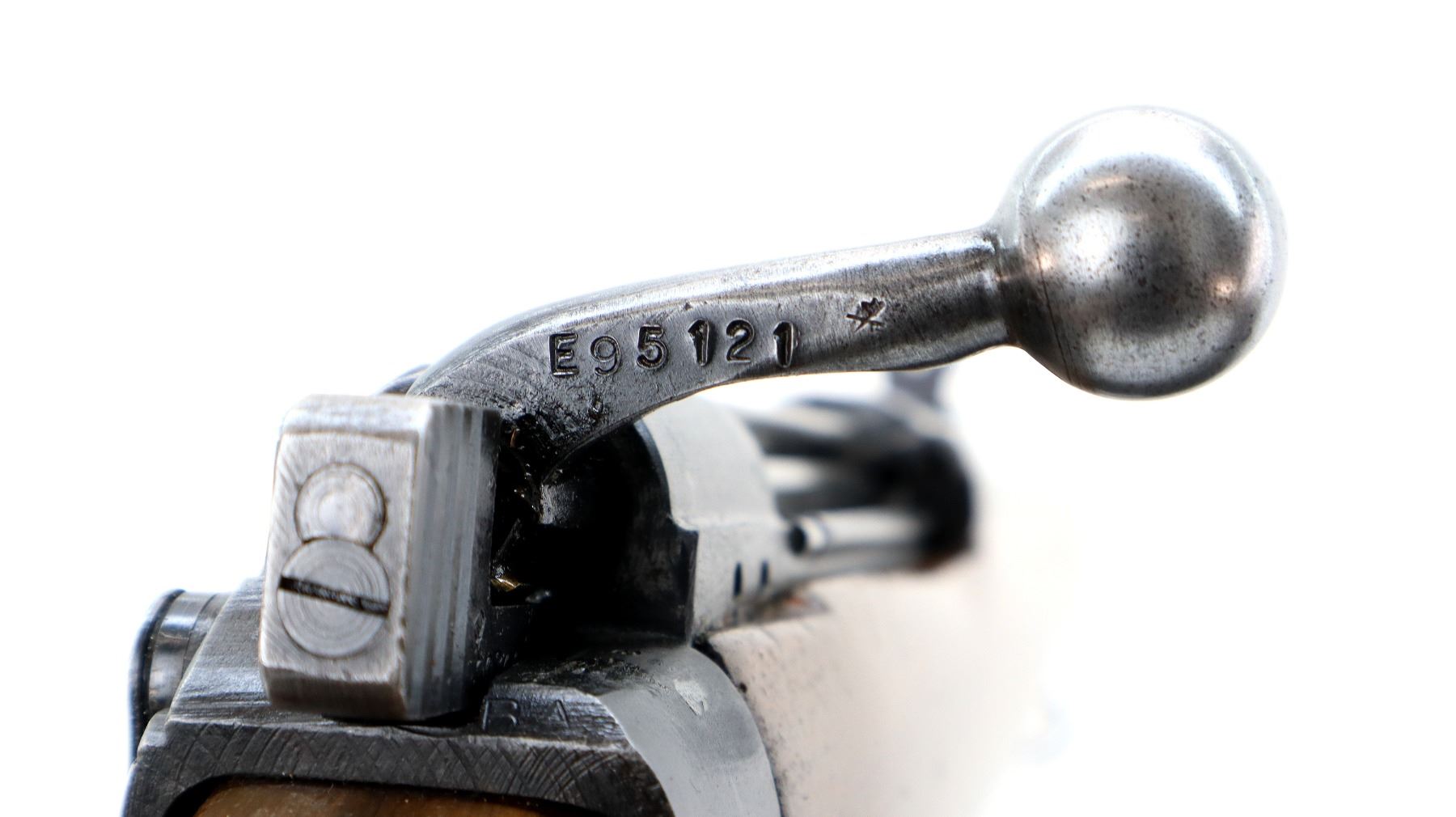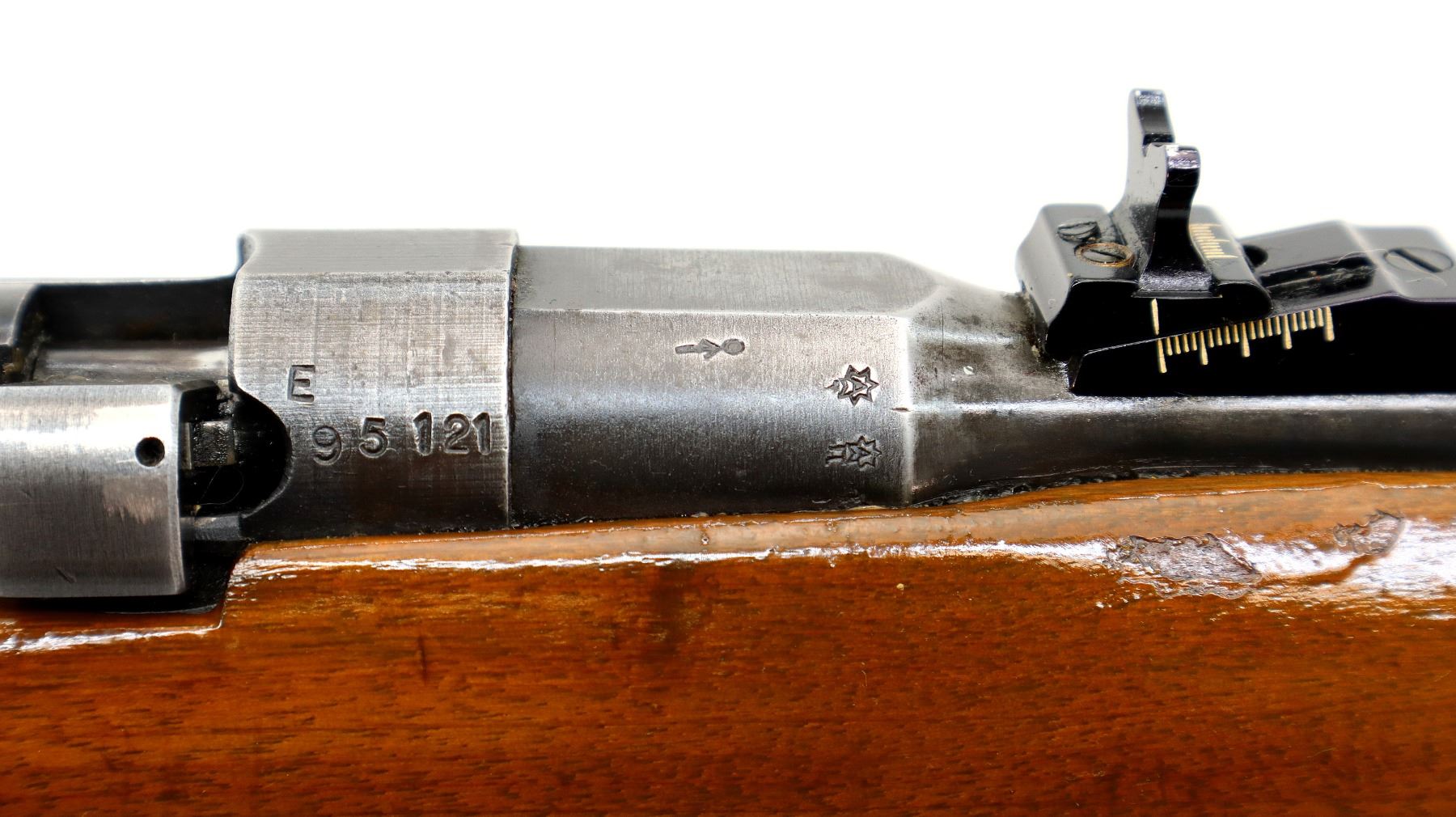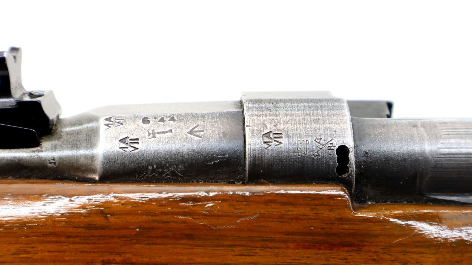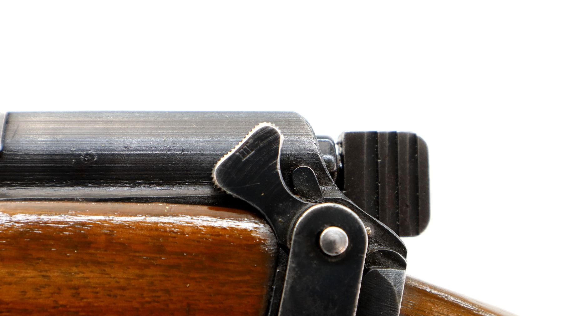 Main Description: Manufactured by Lithgow 1944, bolt matches. Blade front sight with ramp, adjustable u notched rear sight, receiver bridge removed, right side drilled and tapped with no plug screws installed. Two piece sporterized wood stocks, pistol grip, raised comb, grooved black polymer butt plate, sling swivels.