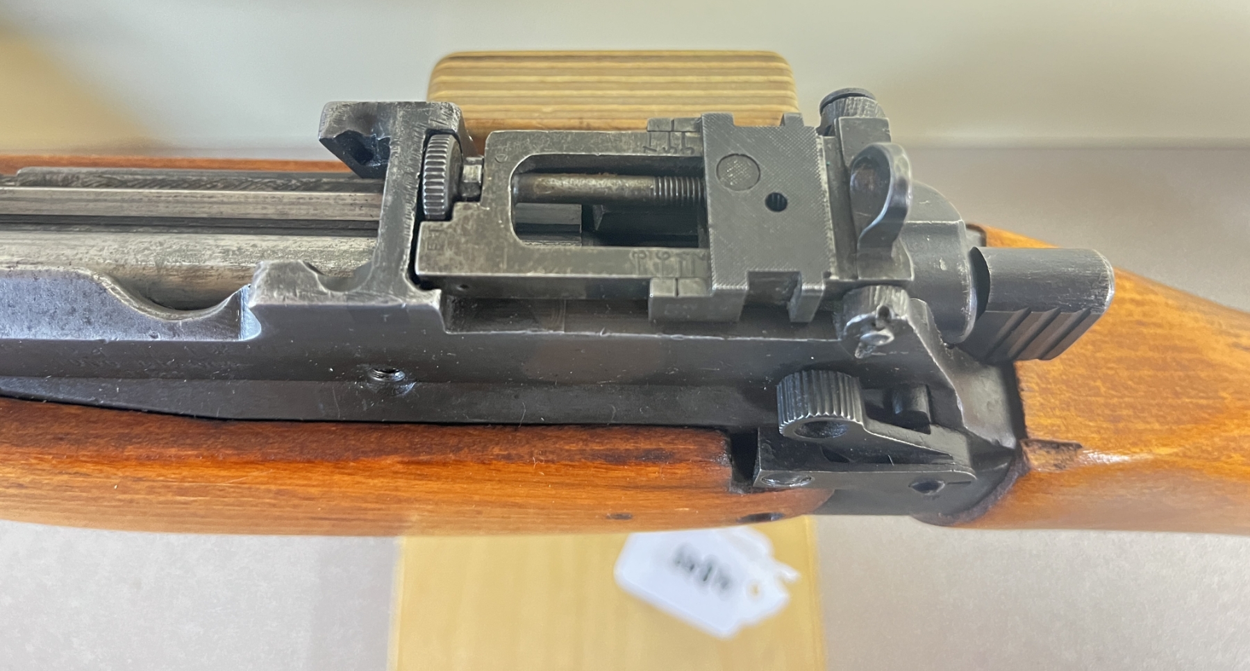 CONDITION: F-G OVERALL G BORE. NOTE: MISSING EJECTOR, MAGAZINE MISSING FOLLOWER AND SPRING. SPECS: 23IN BBL. EXTRAS: NONE. S/N: 46L1218