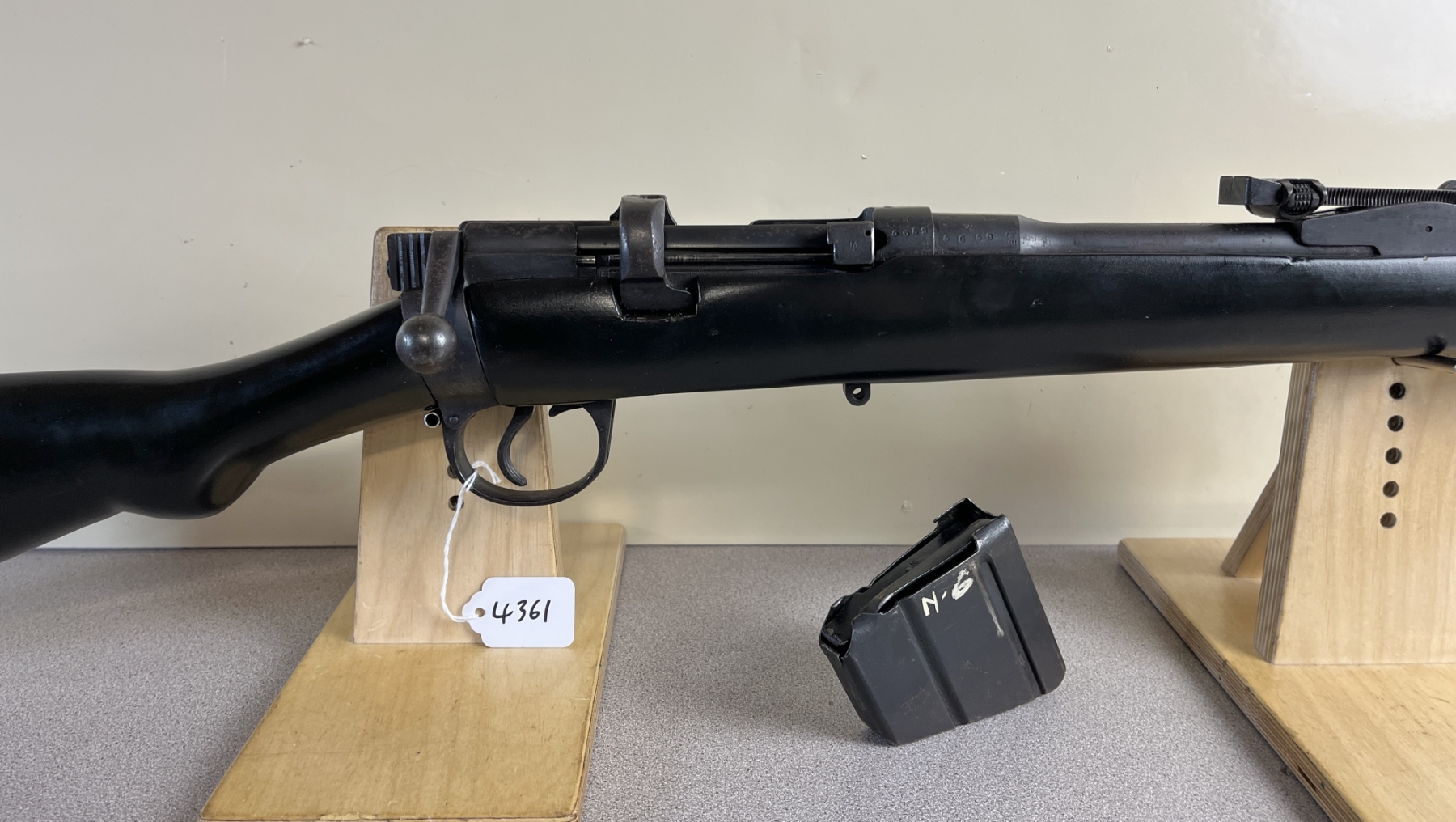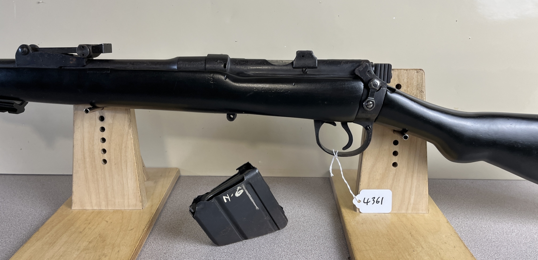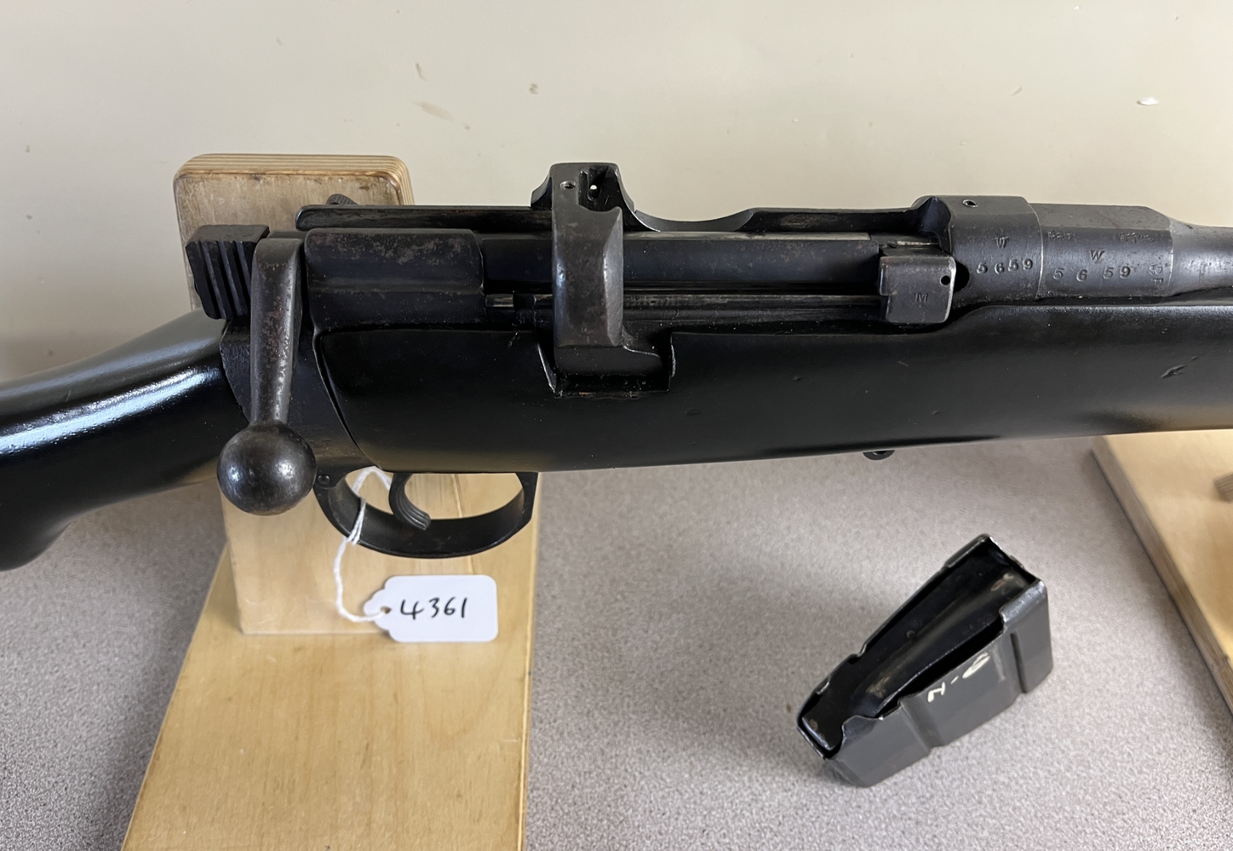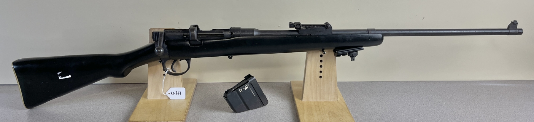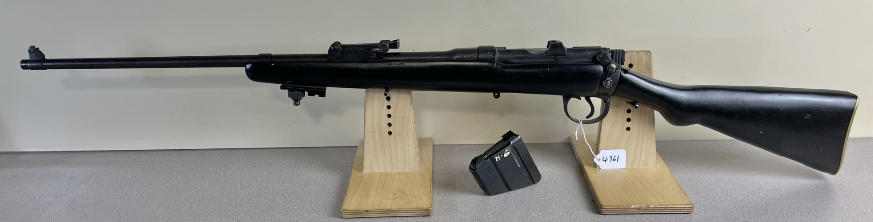 CONDITION: F-G OVERALL, BORE F. NOTE: 2X DRILLED AND TAPPED HOLES TOP OF RECEIVER. SPECS: 25-1/4IN BBL WITH IRON SIGHTS. INCL 1X MAG. PICATINNI RAIL INSTALLED AT FORWARD SLING SWIVEL. EXTRAS: NONE. S/N: 5659