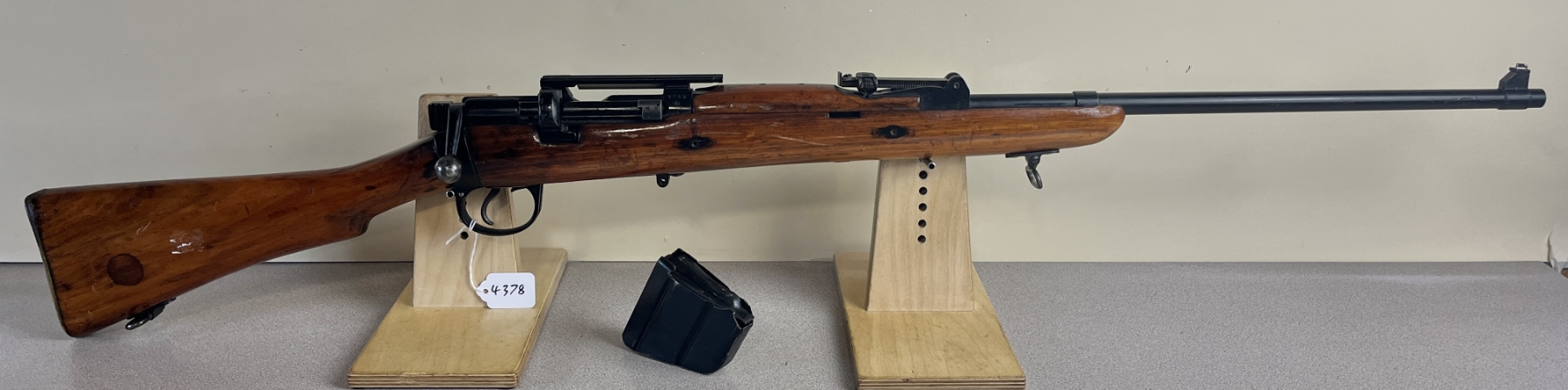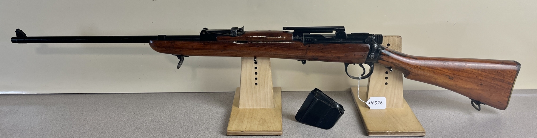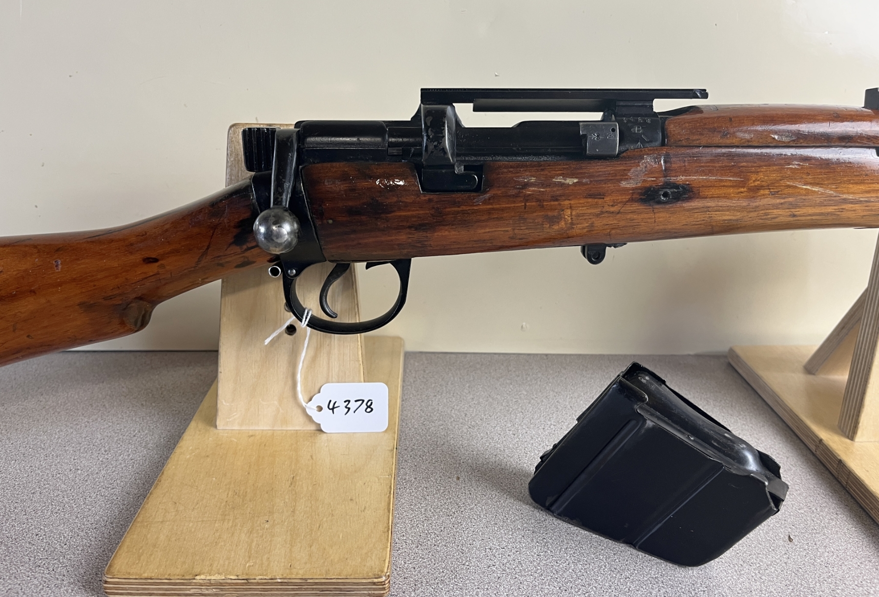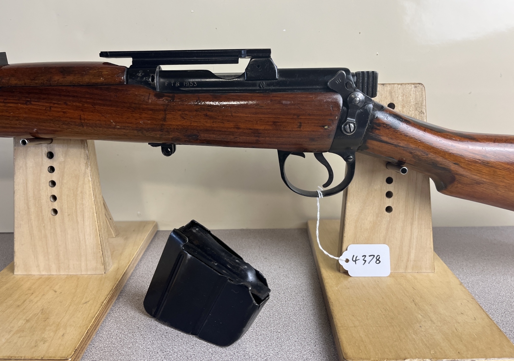 CONDITION: F-G OVERALL, BORE P-F. SPECS: 25-1/4IN BBL. SHOWS FTR1953 ON LEFT SIDE OF RECEIVER. INCL 1X MAG. EXTRAS: SCOPE BASE. S/N: 3469
