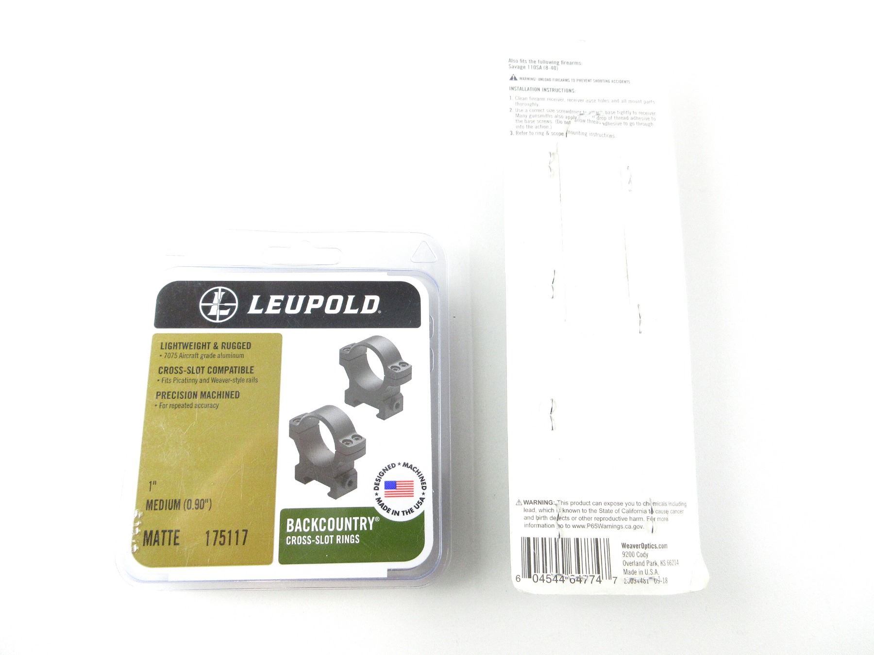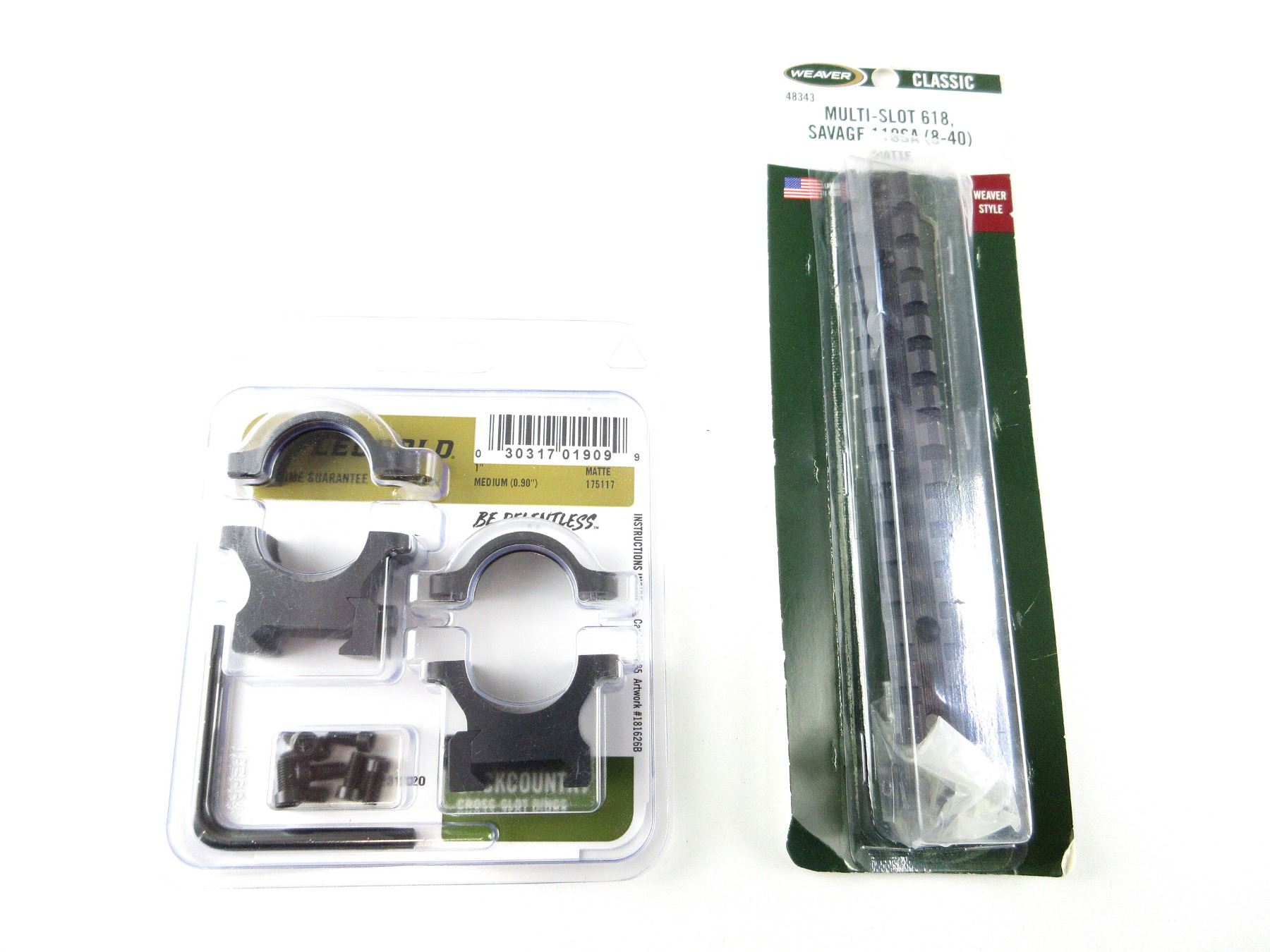 LOT INCLUDES; (1) SET OF 1" BACKCOUNTRY CROSS-SLOT SCOPE RINGS, BLACK MATTE ALUMINIUM, MEDIUM, PART #: 175117, APPEARS NEW OLD STOCK IN ORIGINAL PACKAGING & (1) SAVAGE 110 SHORT ACTION (8-40) MULTI SLOT 618 BASE, MATTE BLACK ALUMINIUM CONSTRUCTION, PART #: 48343, APPEARS NEW OLD STOCK IN ORIGINAL PACKAGING. MAY REQUIRE FITTING. SEE PHOTOS.