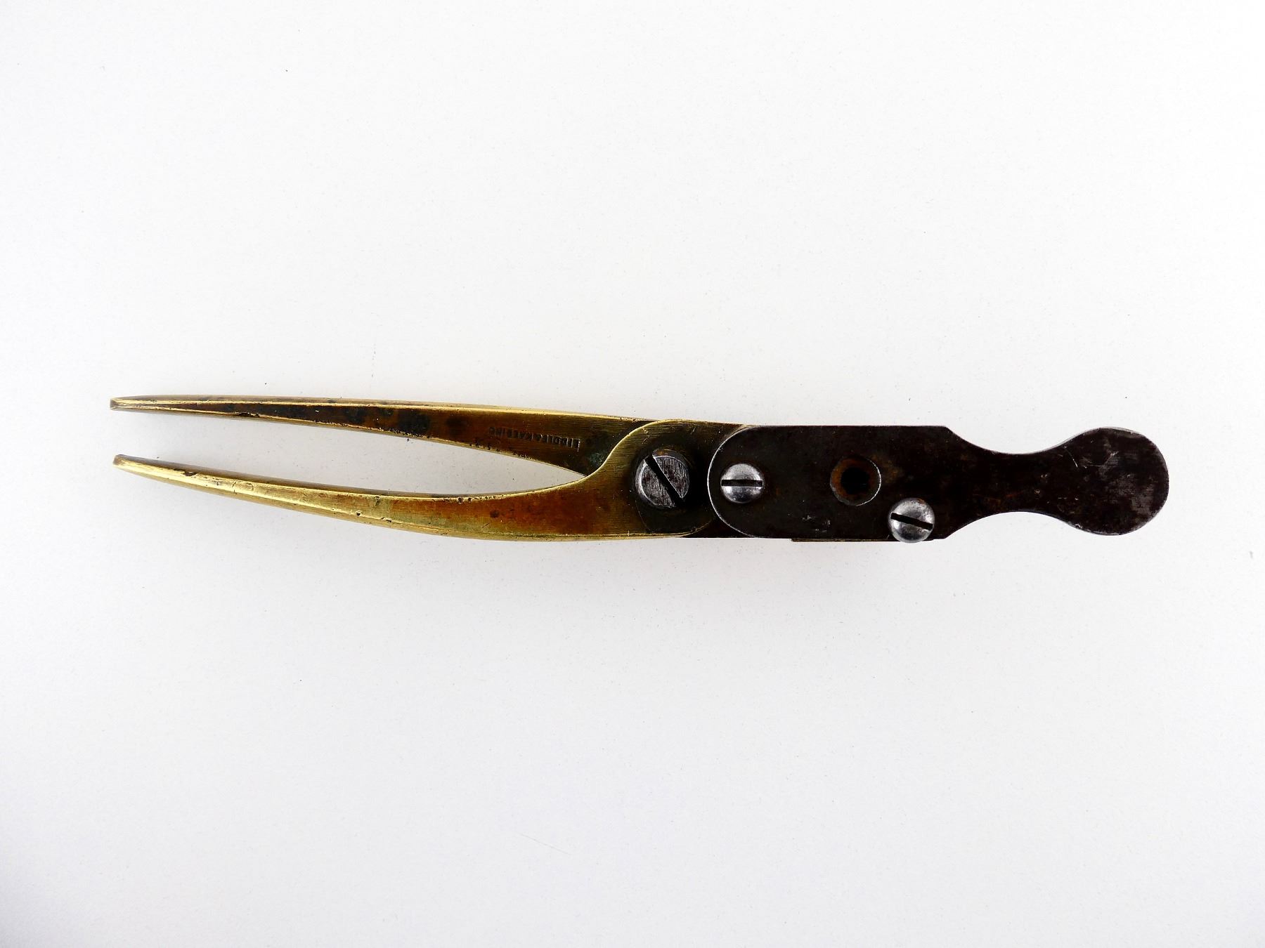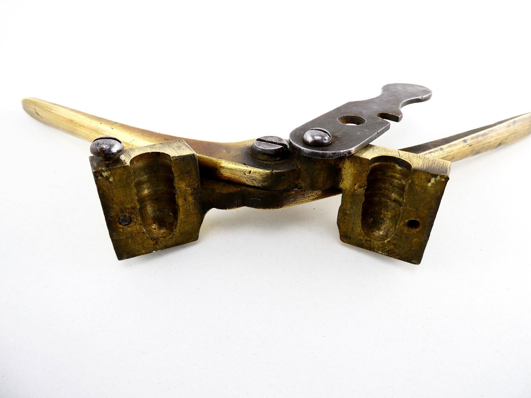 (1) .45-70 CAL. BRASS SINGLE-CAVITY BULLET MOLD, MOLD MARKED: "45 70", HANDLES MARKED: "LIDDLE&KAEDING". SEE PHOTOS.