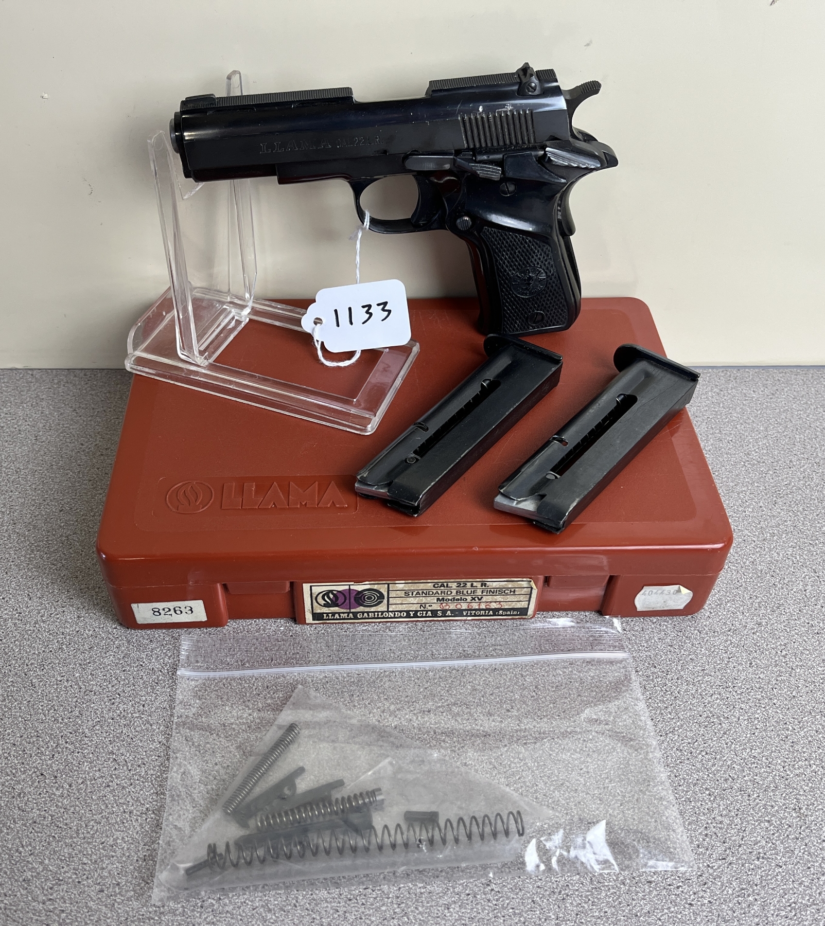 CONDITION: G OVERALL INCL BORE. SPECS: 95MM BBL. INCL 2X MAGS. EXTRAS: ORIGINAL HARDCASE, SMALL QUANTITY OF PARTS. S/N: B06183