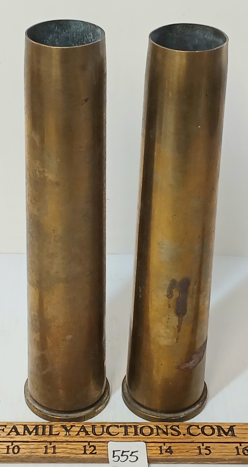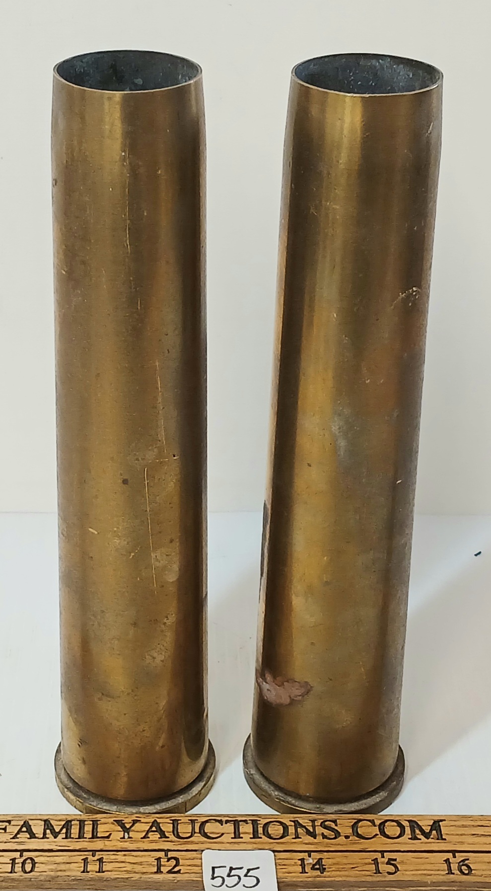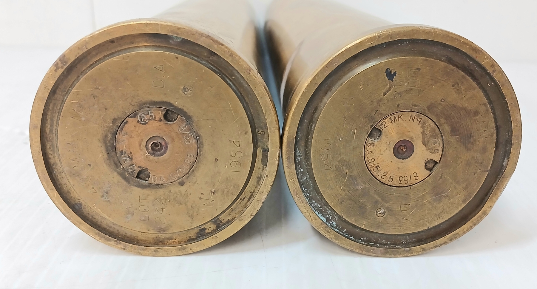 LOT OF 2 - 1954 BOFORS ANTI-AIRCRAFT GUN 40MM MK NO.4 BRASS SHELLS