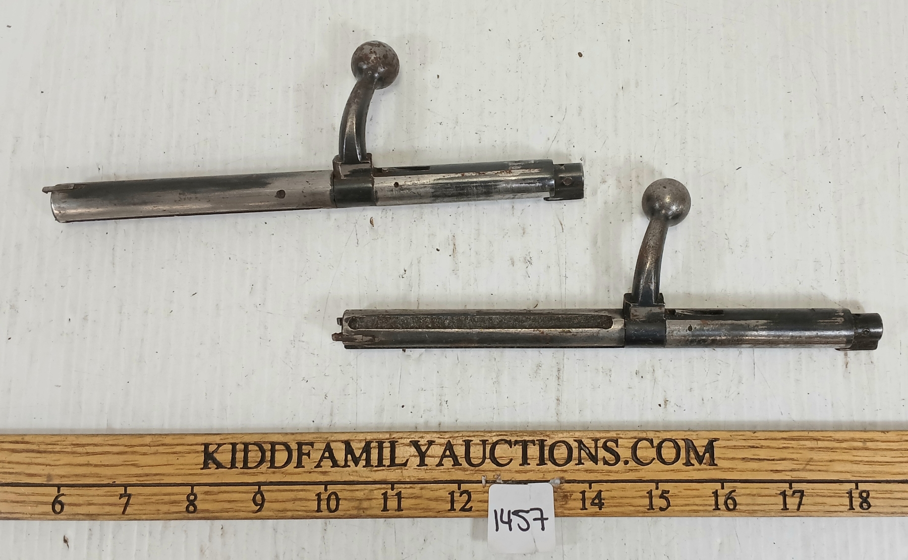 KIDD FAMILY AUCTIONS does not guarantee or make warranties on any lot sold. Ratings in the catalog are our opinion. We acknowledge that errors may occur although we endeavor to give you accurate information in what is written. We strongly recommend you personally view any item you bid on. We are closed Sundays. A gunsmith should be consulted before attempting to use or fire any firearm or ammunition. KIDD FAMILY AUCTIONS cannot be held liable.