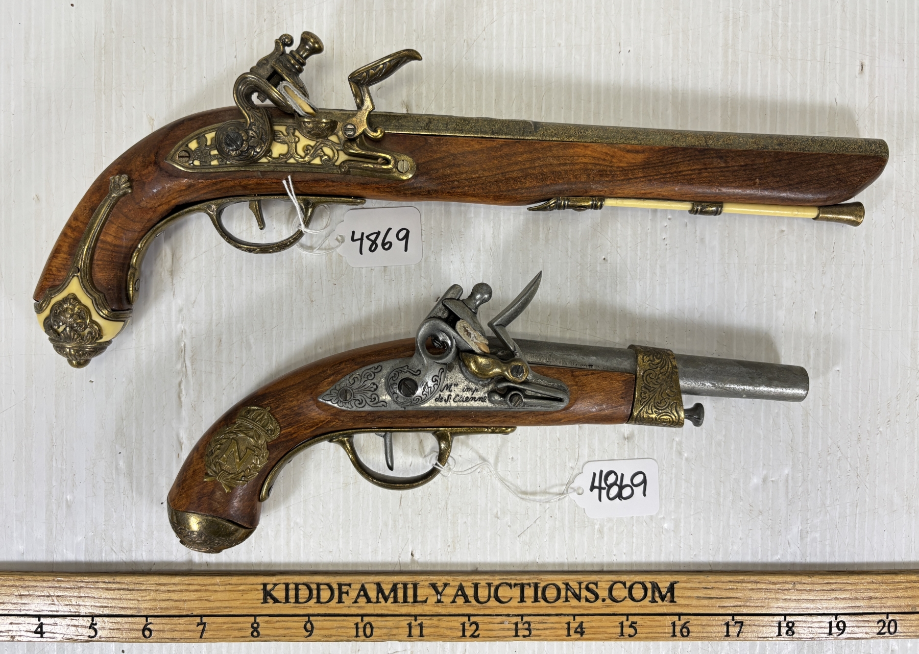 KIDD FAMILY AUCTIONS does not guarantee or make warranties on any lot sold. Ratings in the catalog are our opinion. We acknowledge that errors may occur although we endeavor to give you accurate information in what is written. We strongly recommend you personally view any item you bid on. We are closed Sundays. A gunsmith should be consulted before attempting to use or fire any firearm or ammunition. KIDD FAMILY AUCTIONS cannot be held liable.