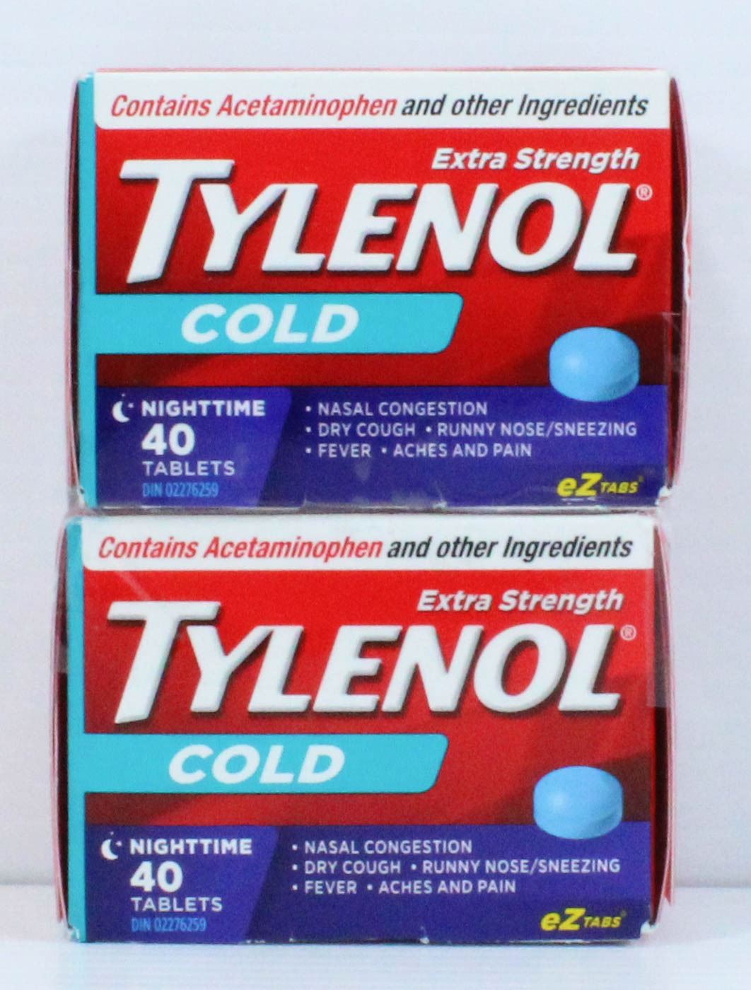 LOT OF 2 TYLENOL COLD EXTRA STRENGTH NIGHTIME TABLETS - 40 EZ TABS EACH
