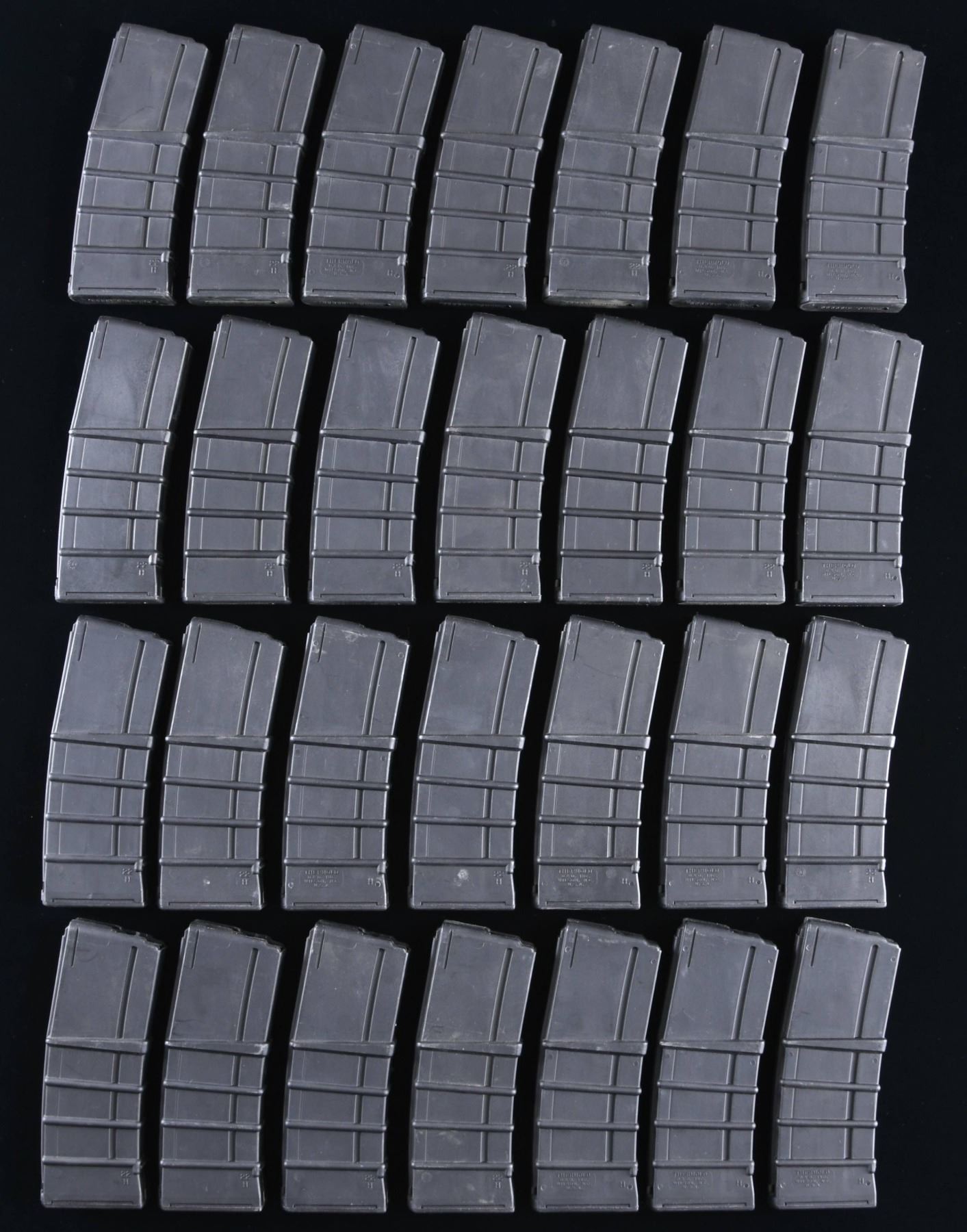 Lot of 28 30-rd. Thermold AR-15 mags. Mags. are comprised of black polymer and are marked "THERMOLD/ D.&D. INC./ WILSON, N.C./ U.S.A." on the left side. CONDITION: mags. exhibit some scattered superficial marks from handling and storage, but otherwise remain sturdy and serviceable. (02-24238/MLW). $300-500.