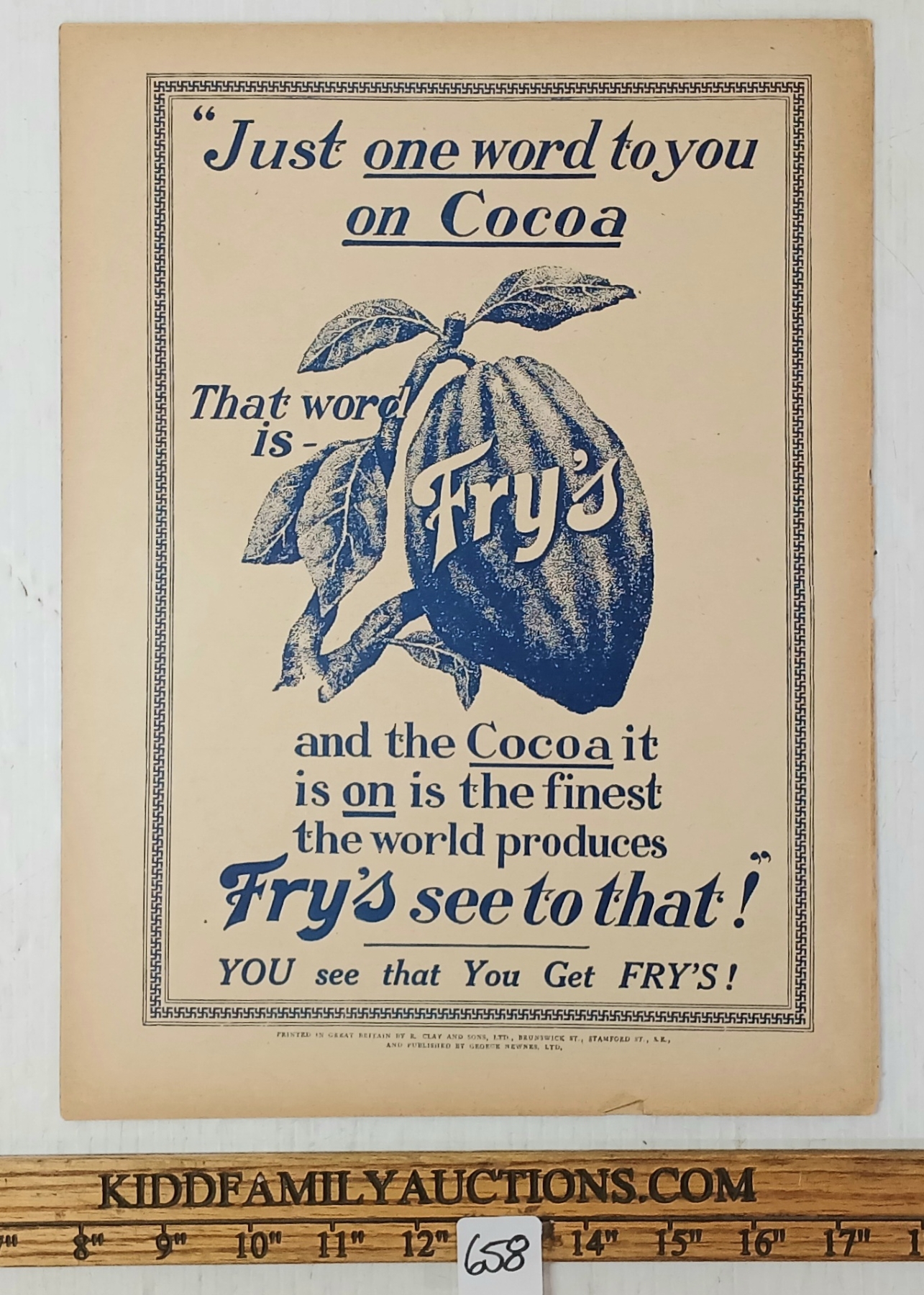 U.S. BIDDERS: We regret to inform you that Kidd Family Auctions is no longer able to ship to the United States due to the newly imposed U.S. postal tariffs (Sept 2025). If a U.S. bidder places a winning bid, payment will still be required but the item will not be shipped. Instead, we will work with the buyer to determine if the item can be resold in a future auction, at which point the buyer becomes the consignor. Worldwide shipping to all other destinations remains available. Please give us a call if you have any questions.