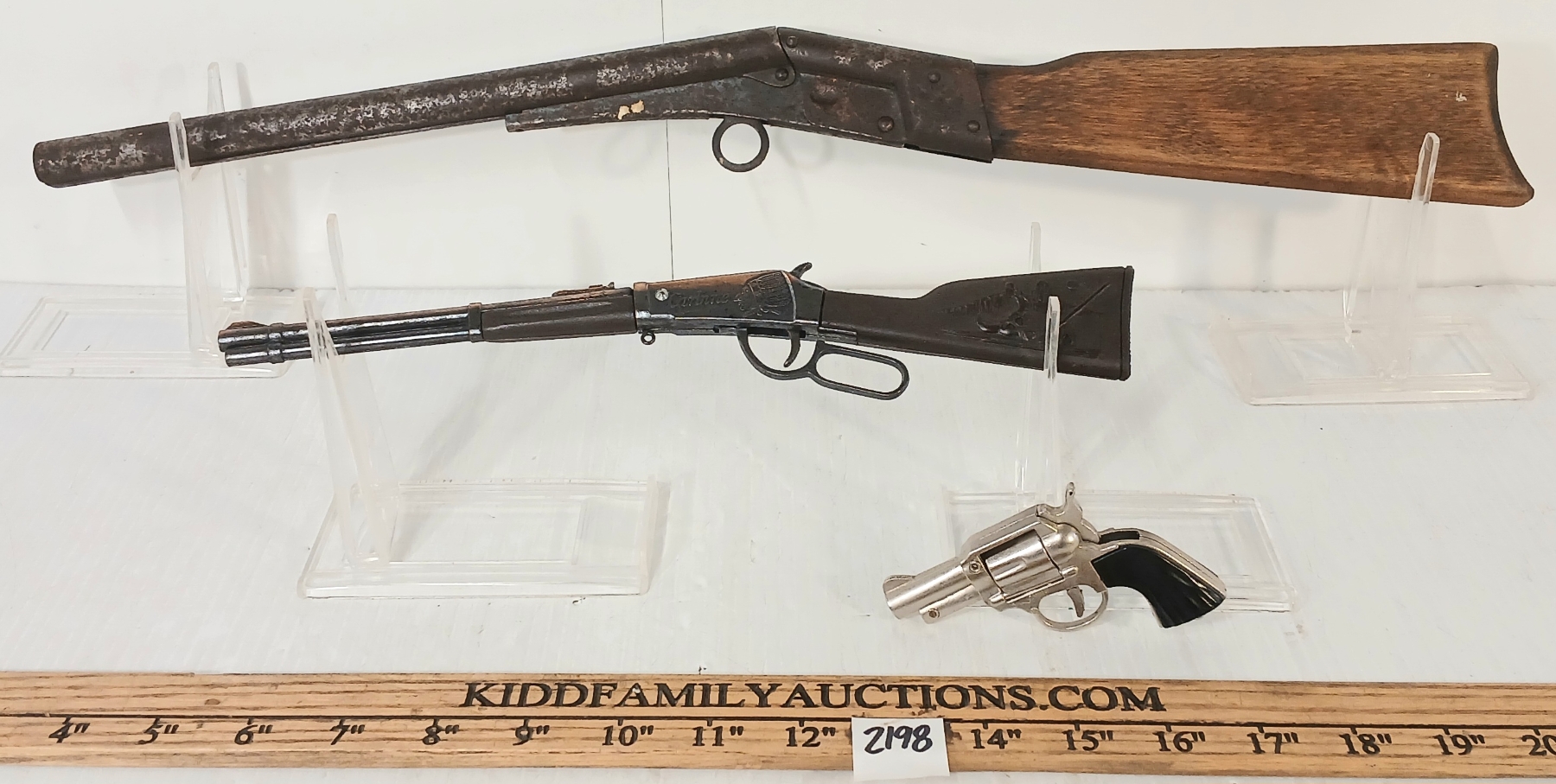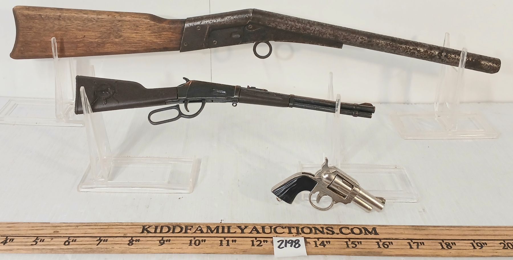KIDD FAMILY AUCTIONS does not guarantee or make warranties on any lot sold. Ratings in the catalog are our opinion. We acknowledge that errors may occur although we endeavor to give you accurate information in what is written. We strongly recommend you personally view any item you bid on. We are closed Sundays. A gunsmith should be consulted before attempting to use or fire any firearm or ammunition. KIDD FAMILY AUCTIONS cannot be held liable.