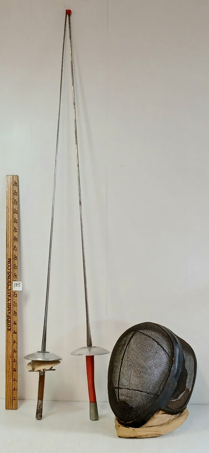 NOTE: 36IN LENGTH BLADES - MASK MARKED MFG FRANCE - 1 SWORD MARKED FRANCE LAMES