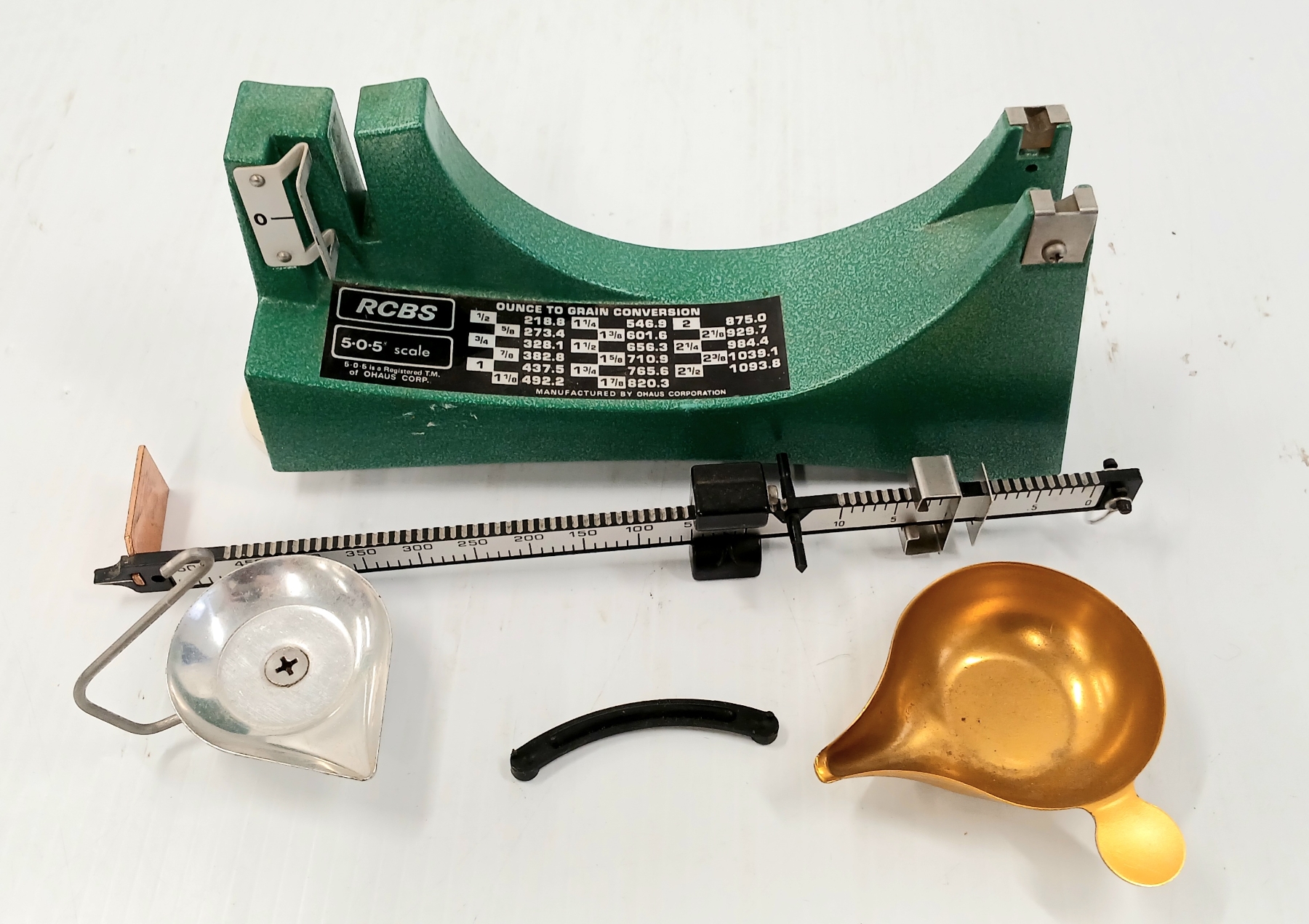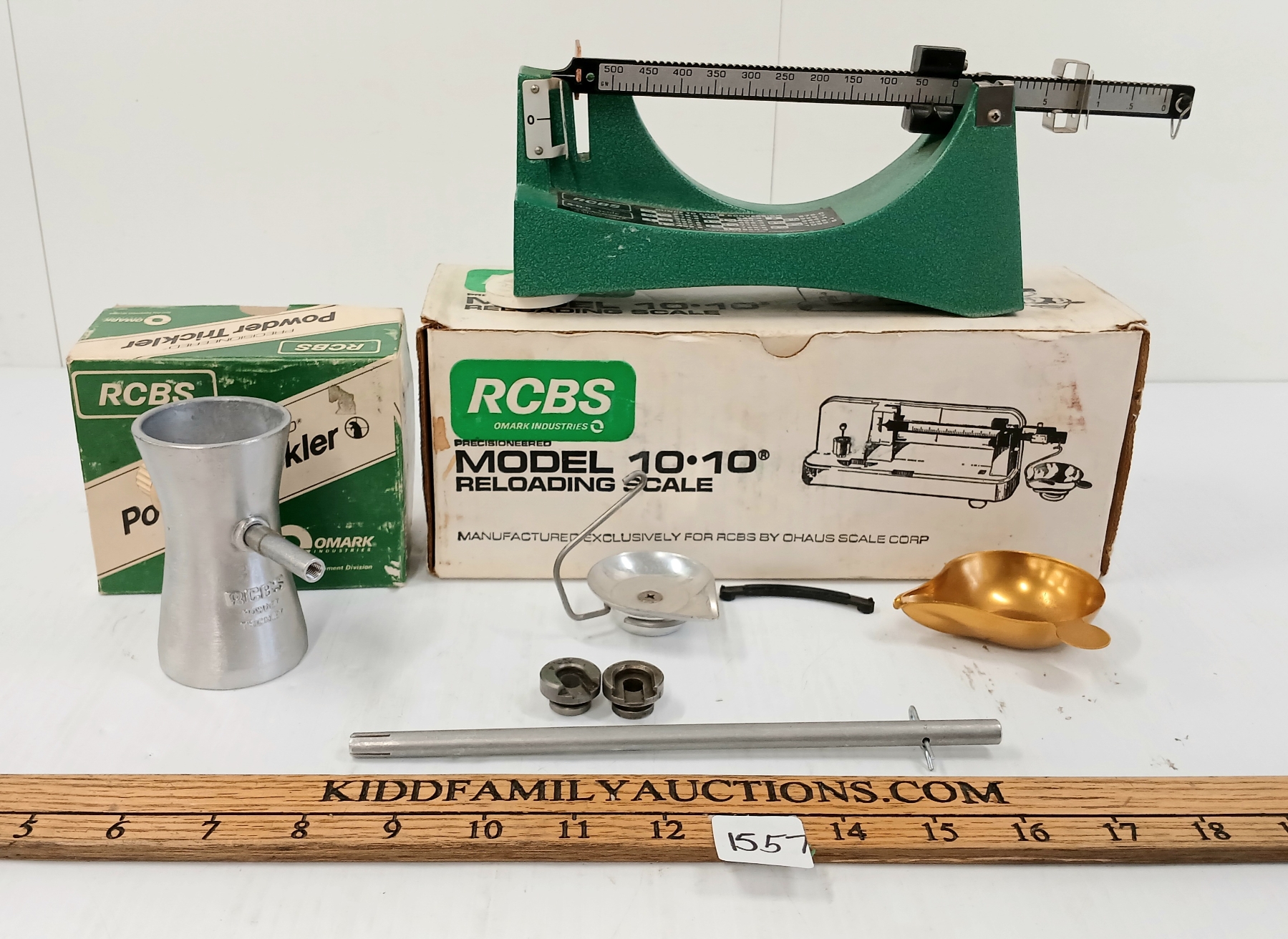 LOT OF 4 - RCBS MODEL 10.10 RELOADING SCALE, POWDER TRICKLER, AUTO PRIMER FEED COMBO & SHELL HOLDER