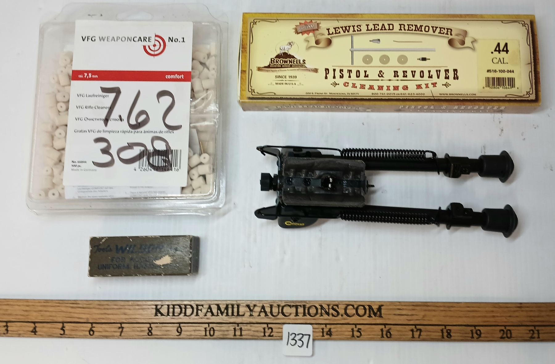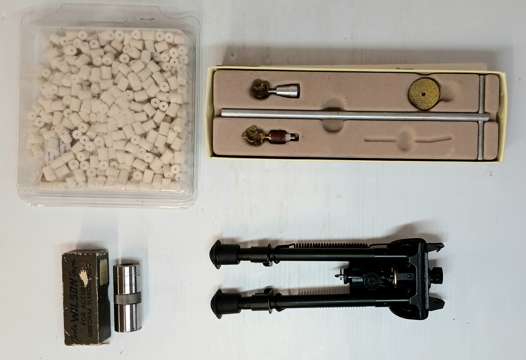 LOT OF 4 - WILSON .30-06 CAL CART CASE GAGE, BIPOD, VFG RIFLE CLEANERS & PISTOL & REVOLVER CLEAN KIT