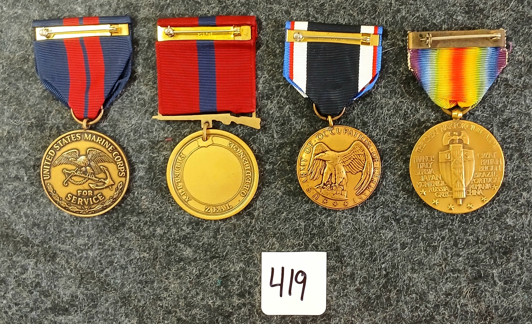 LOT OF 4 - WWI US MEDALS - INCL OCCUPATION OF GERMANY, MARINE CORPS, HAITIN CAMPAIGN, ETC