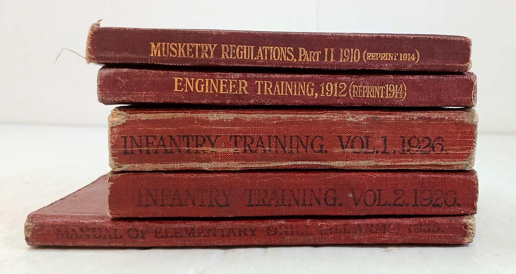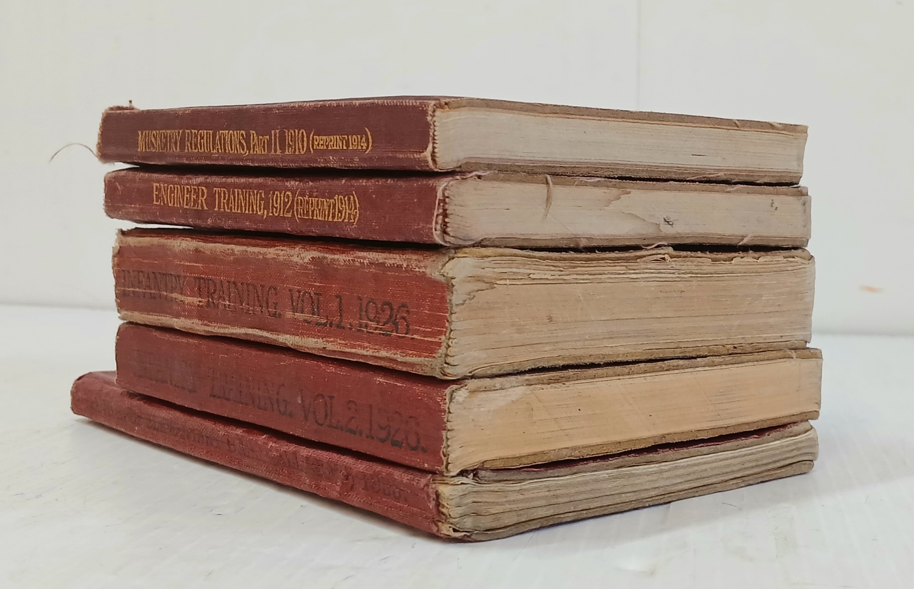 LOT OF 5 - 1910, 1912, 1926 & 1935 BRITISH TRAINING BOOKS - INCL INFANTRY, MUSKETRY, ENGINEERS, ETC
