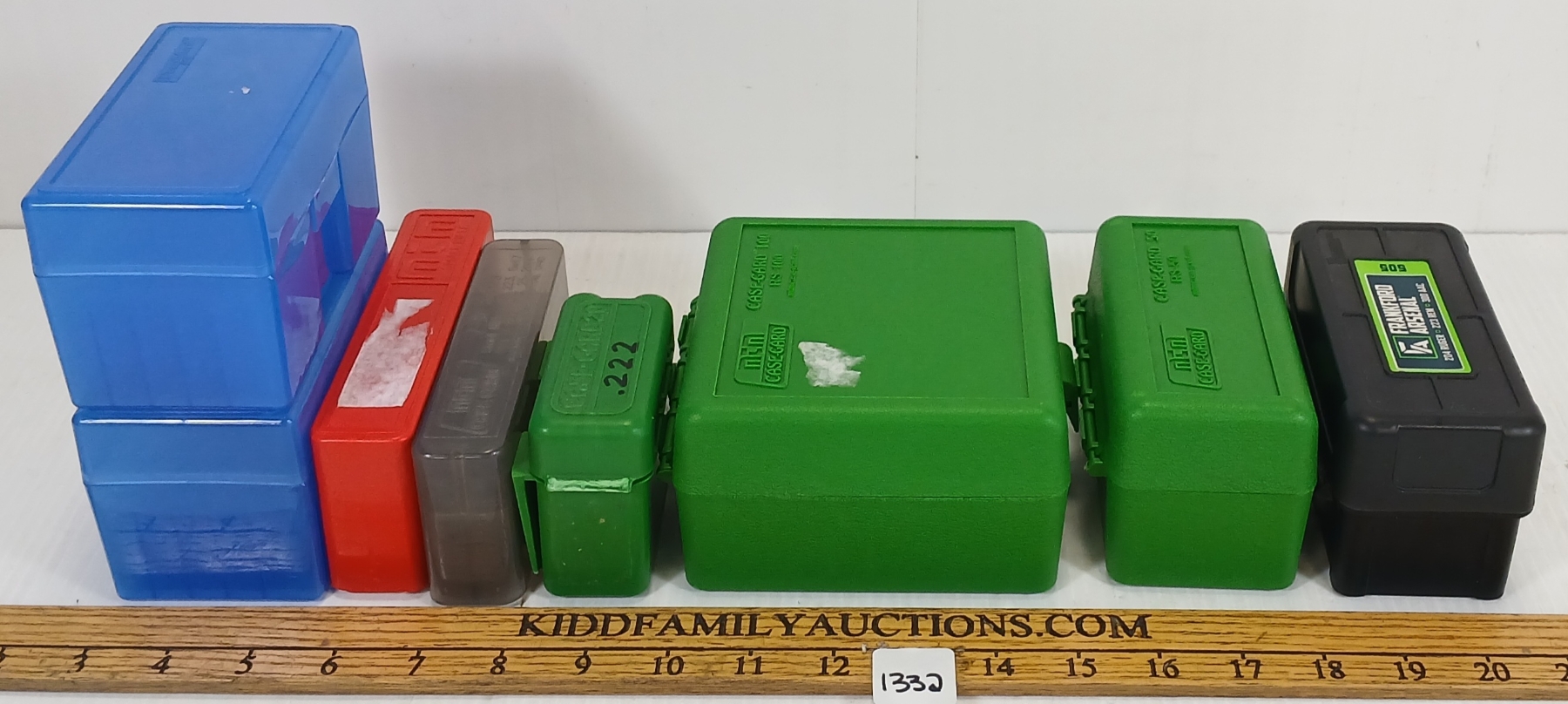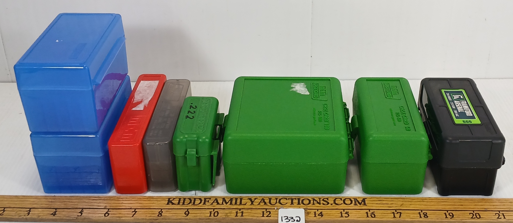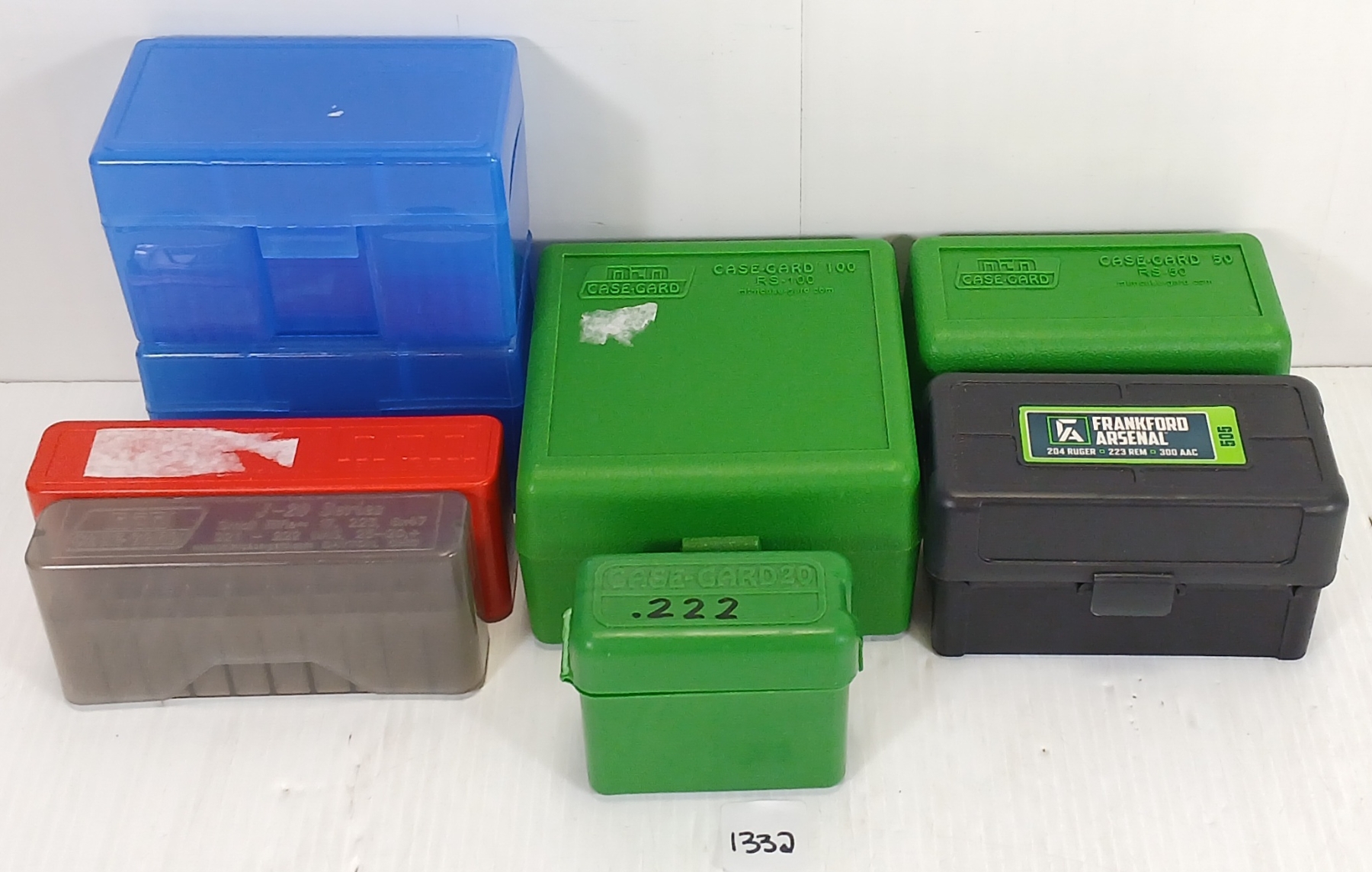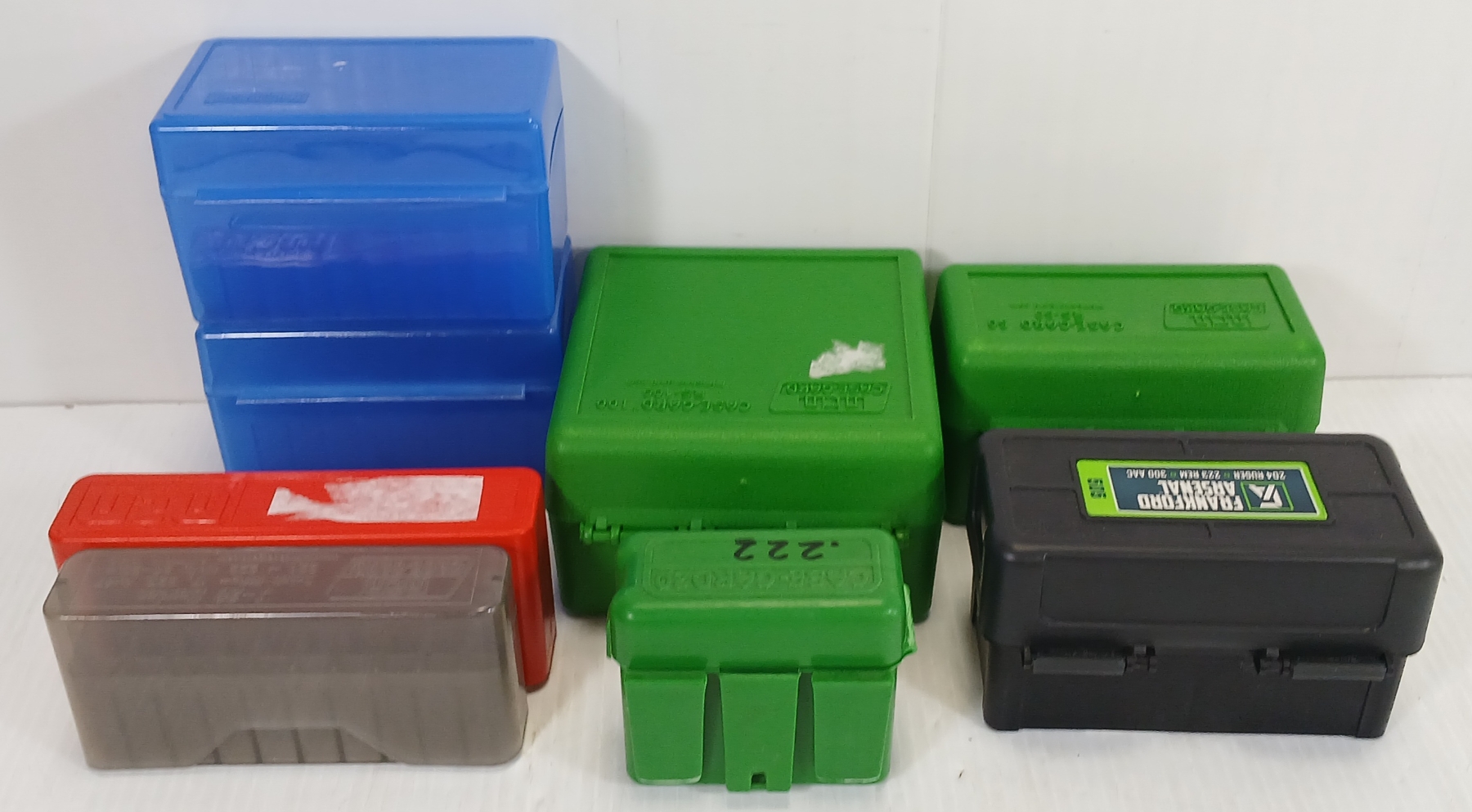 LOT OF 8 - AMMO BOXES - INCL .222 & .223 ETC