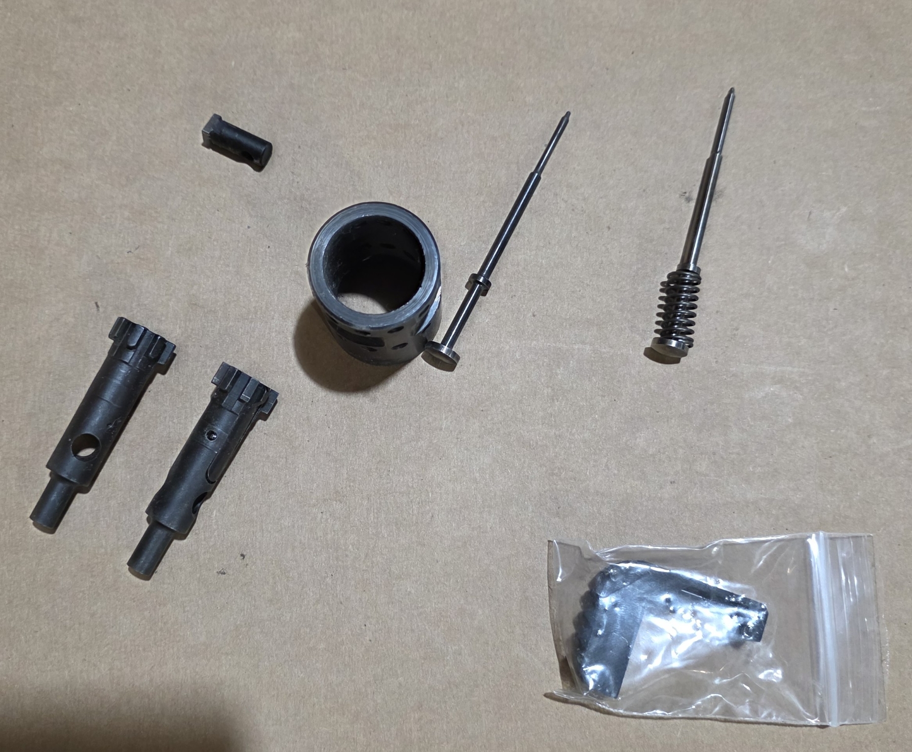 ONE CAM PIN, ONE BARREL NUT, TWO 5.56 BOLTS, TWO 5.56 FIRING PINS, AND A BRASS DEFLECTOR.