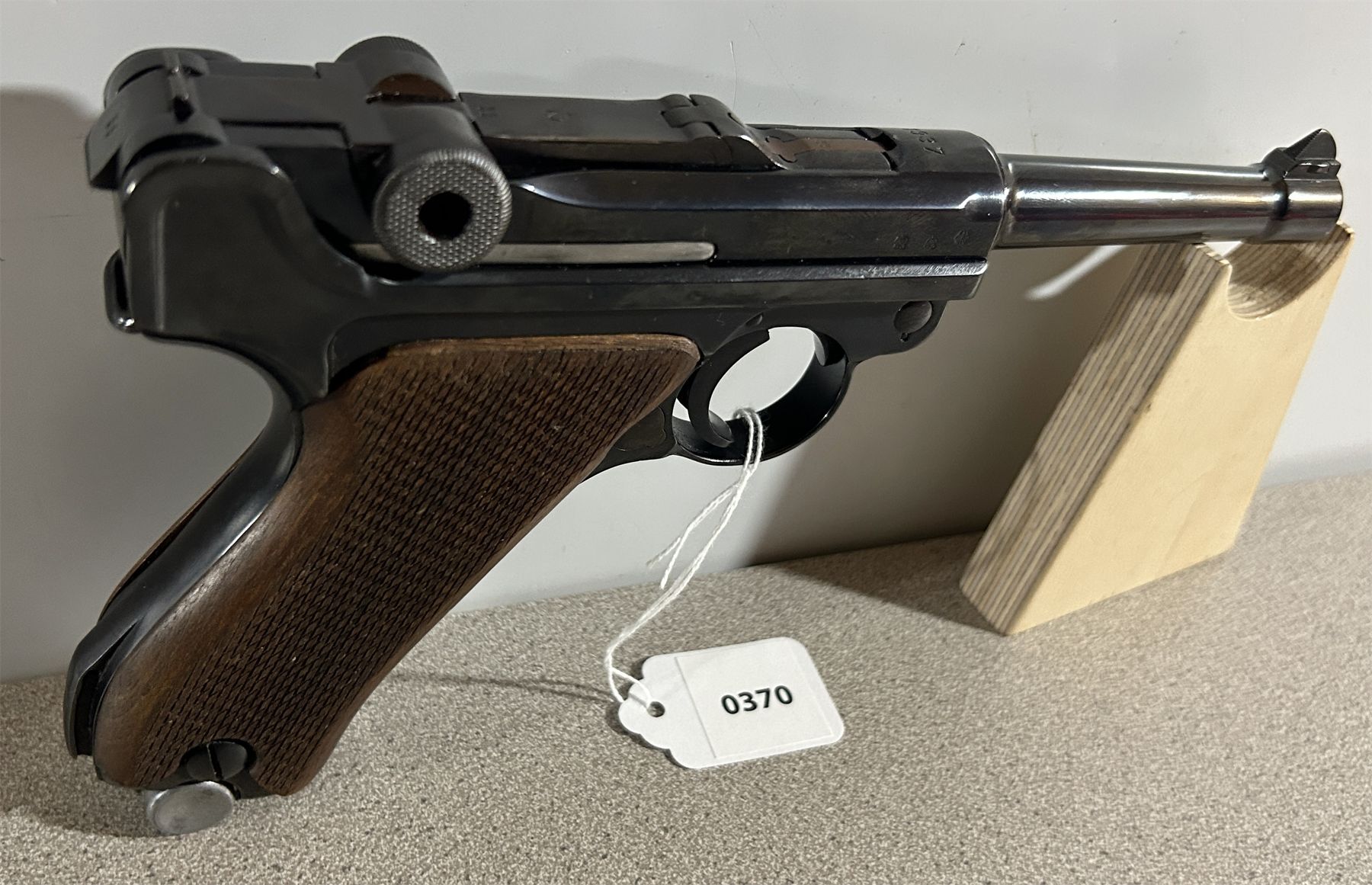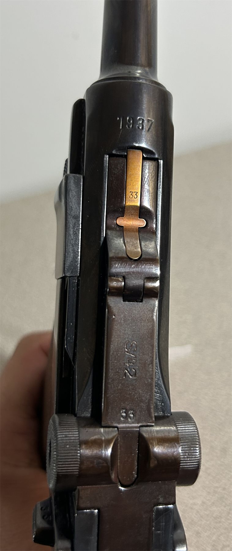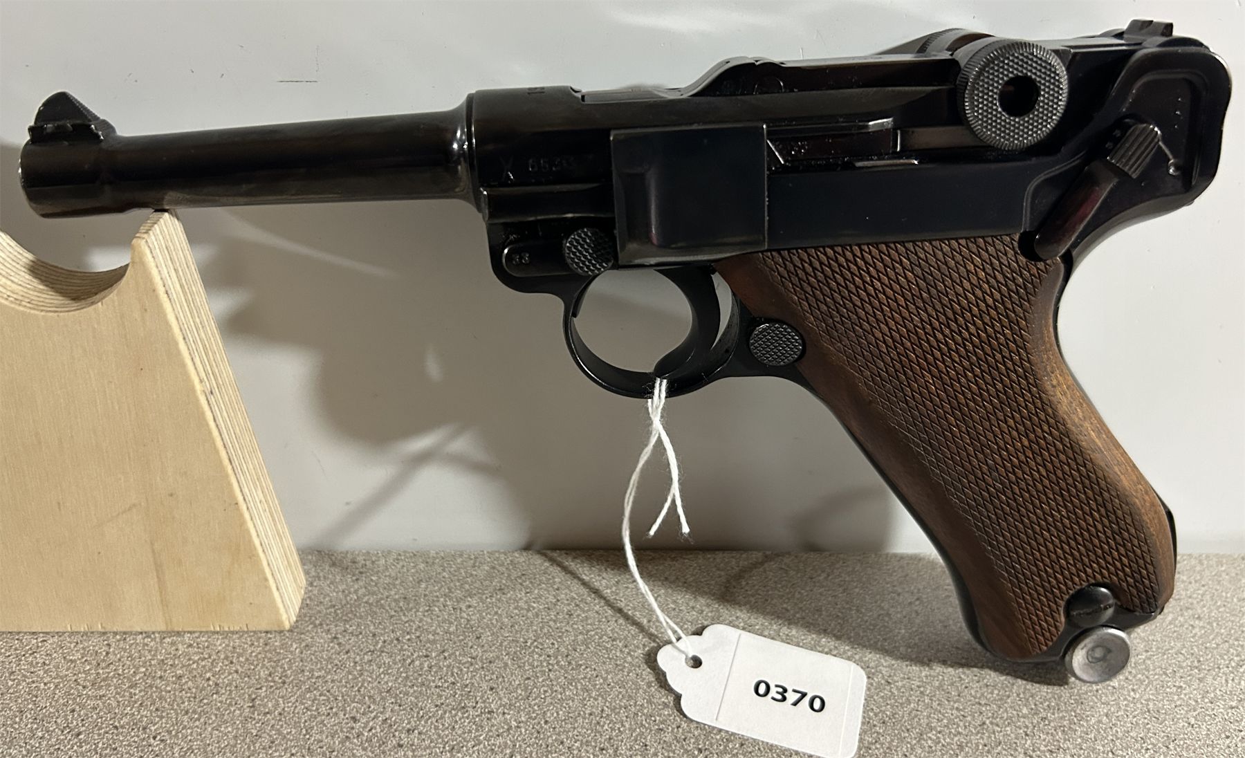CONDITION: VG OVERALL. BORE G. SPECS: SEMI-AUTO. 102 MM BARREL. MARKED 1937 S/42. EAGLE PROOF MARKS. EXTRAS: NONE. S/N: 6533X MATCHING.