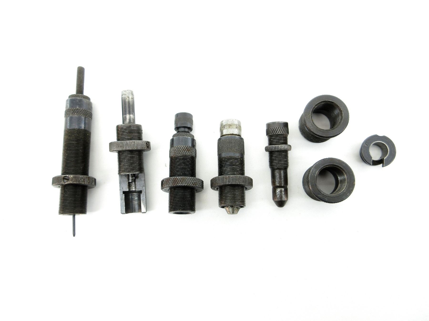 LOT INCLUDES; (4) .310 RELOADING DIES WITH (2) .310 DIE ADAPTERS 7/8 X 14 (1) #1 SHELL HOLDER & (1) BULLET SEATING SCREW MARKED: "359". SEE PHOTOS.