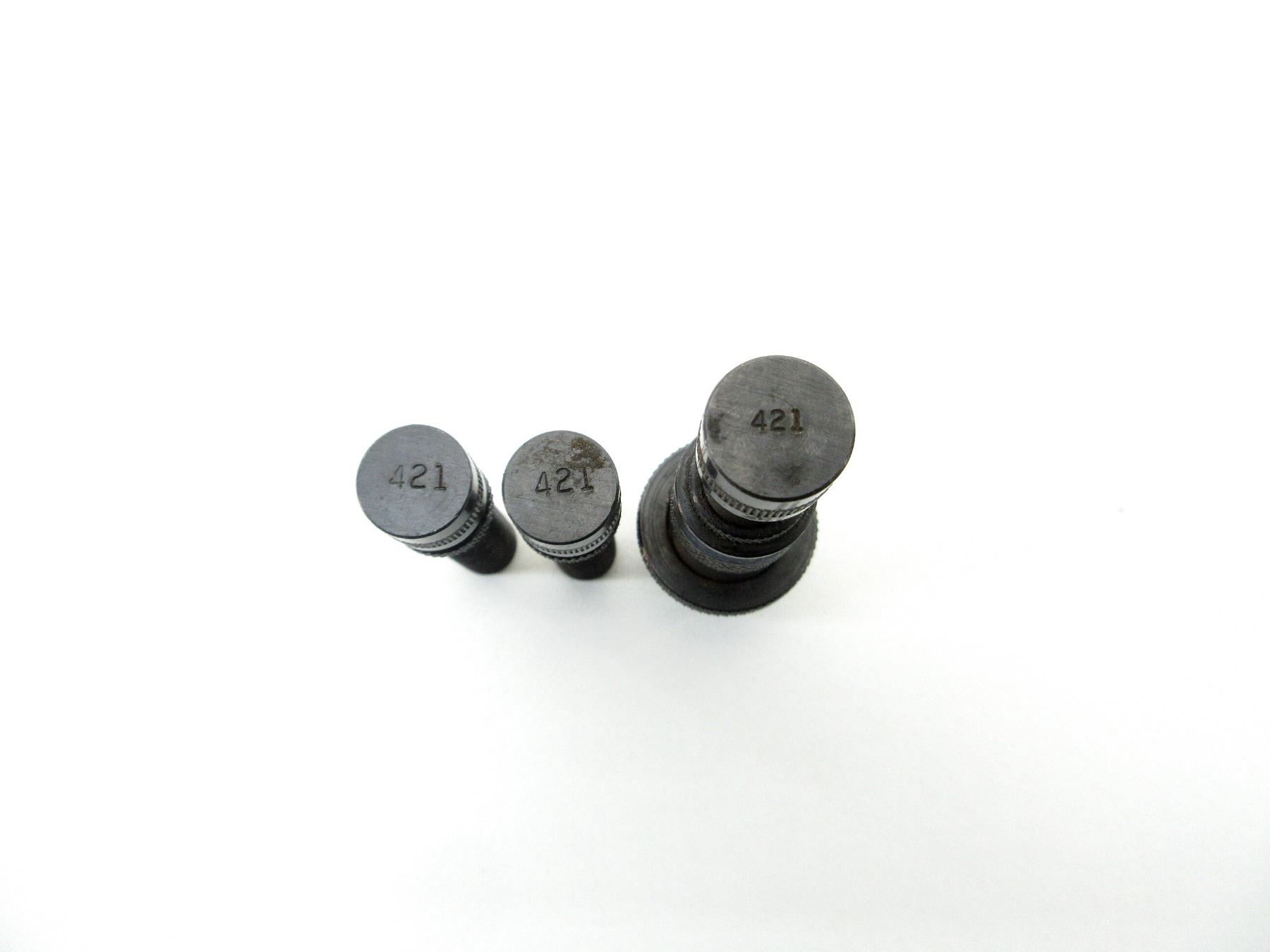 LOT INCLUDES; (3) .310 RELOADING DIES WITH (2) .310 DIE ADAPTERS 7/8 X 14 & (2) EXPANDING PLUGS MARKED: "421". SEE PHOTOS.