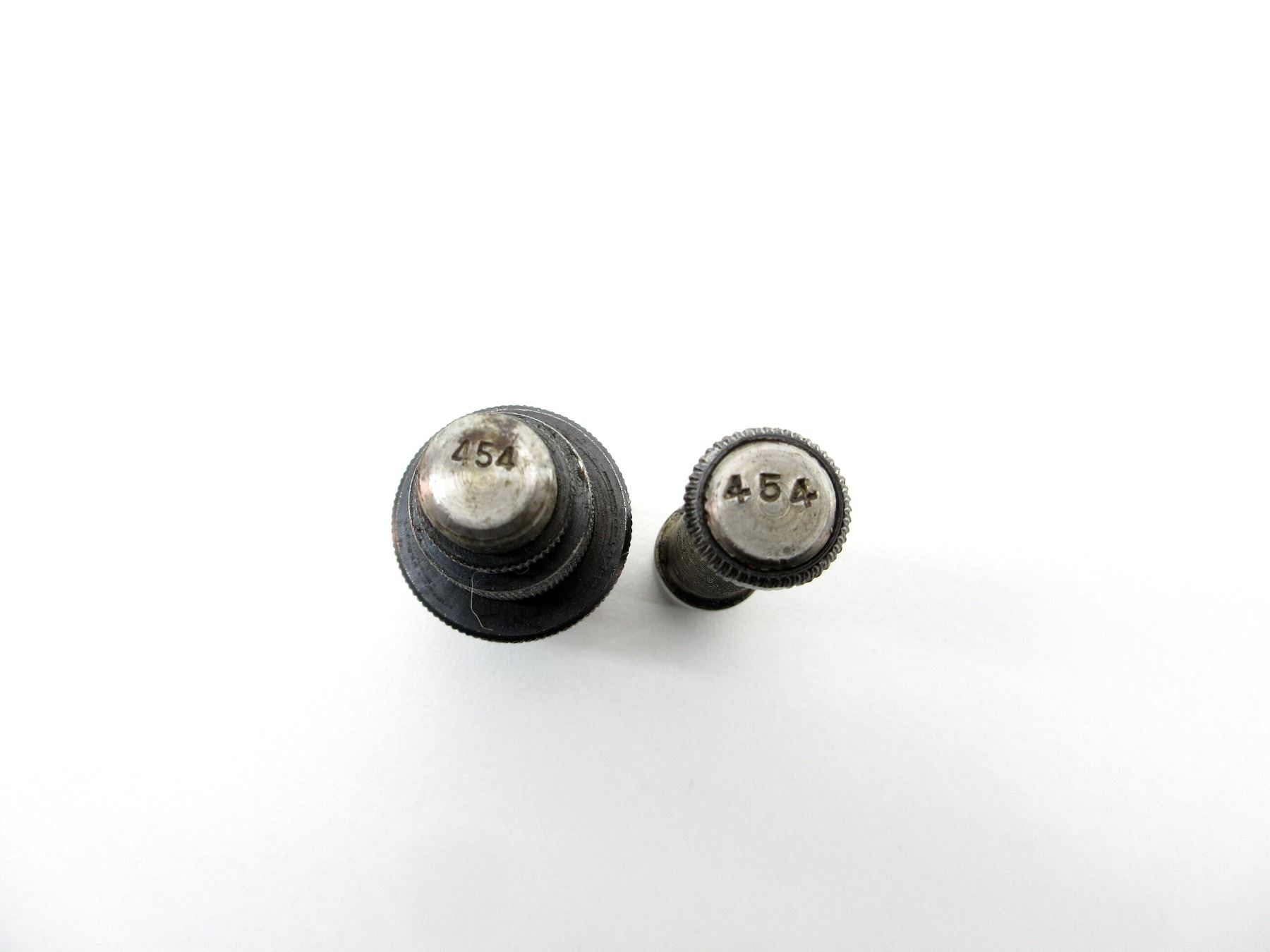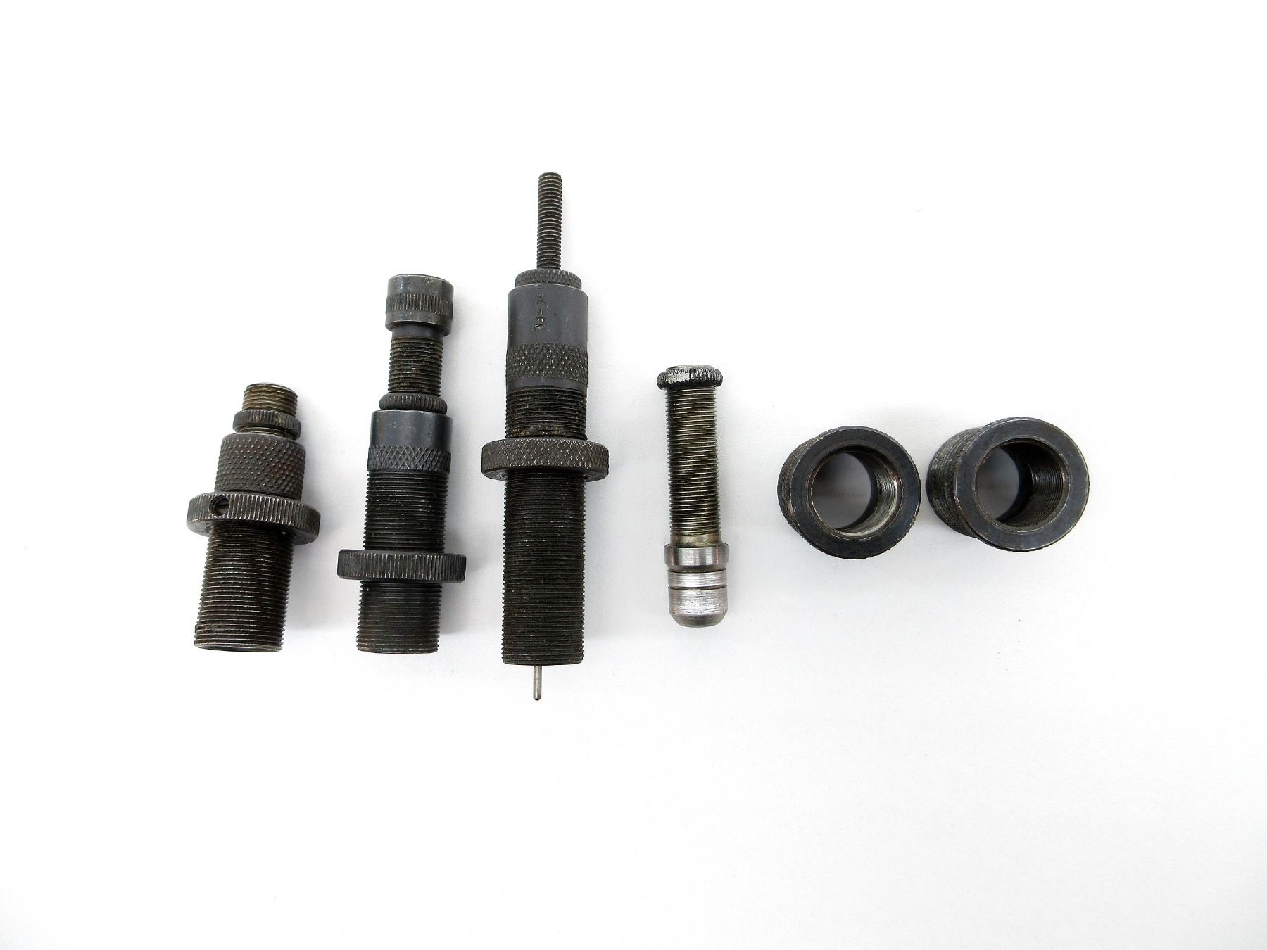 LOT INCLUDES; (3) .310 RELOADING DIES WITH (2) .310 DIE ADAPTERS 7/8 X 14 & (1) BULLET SEATING SCREW MARKED: "454". SEE PHOTOS.