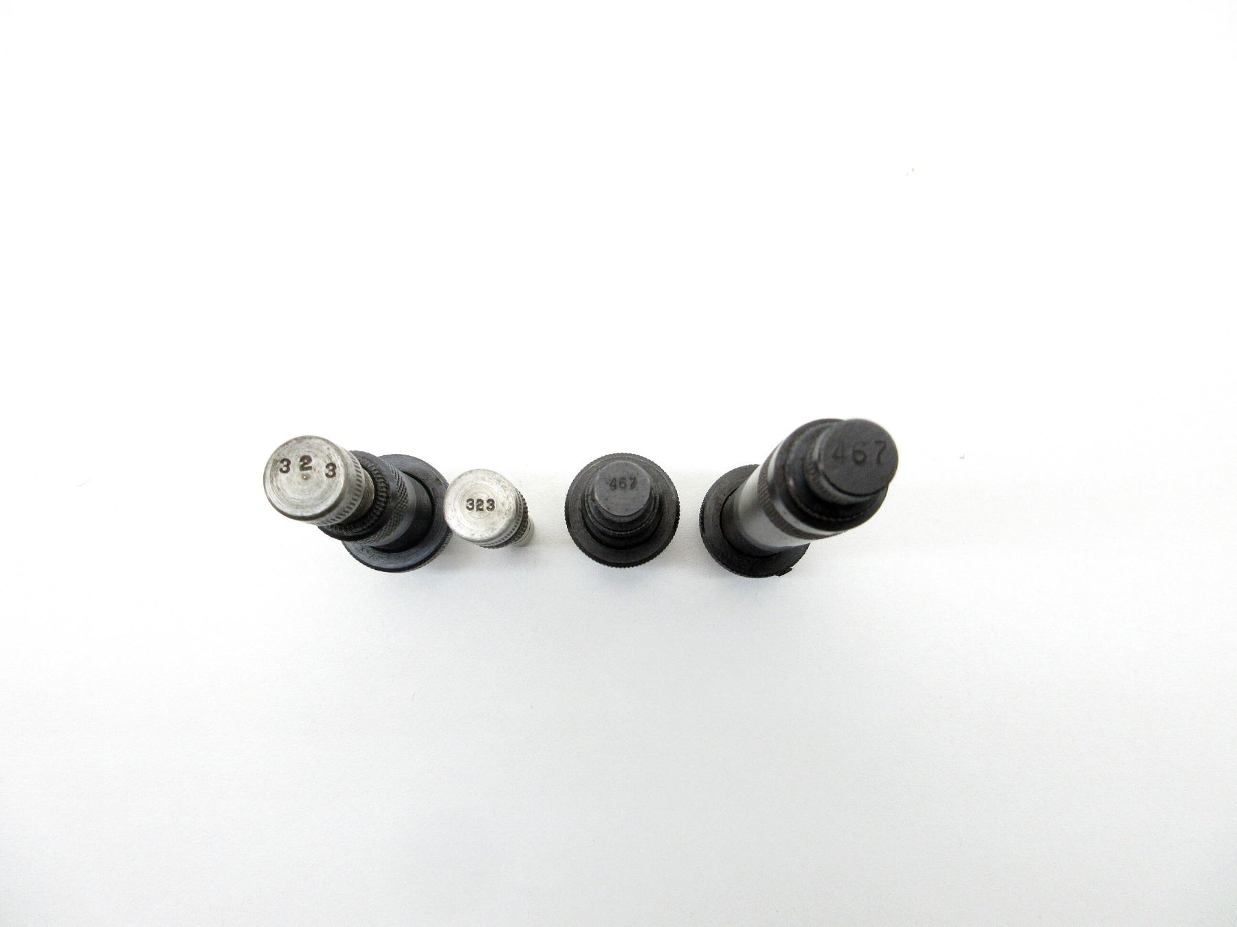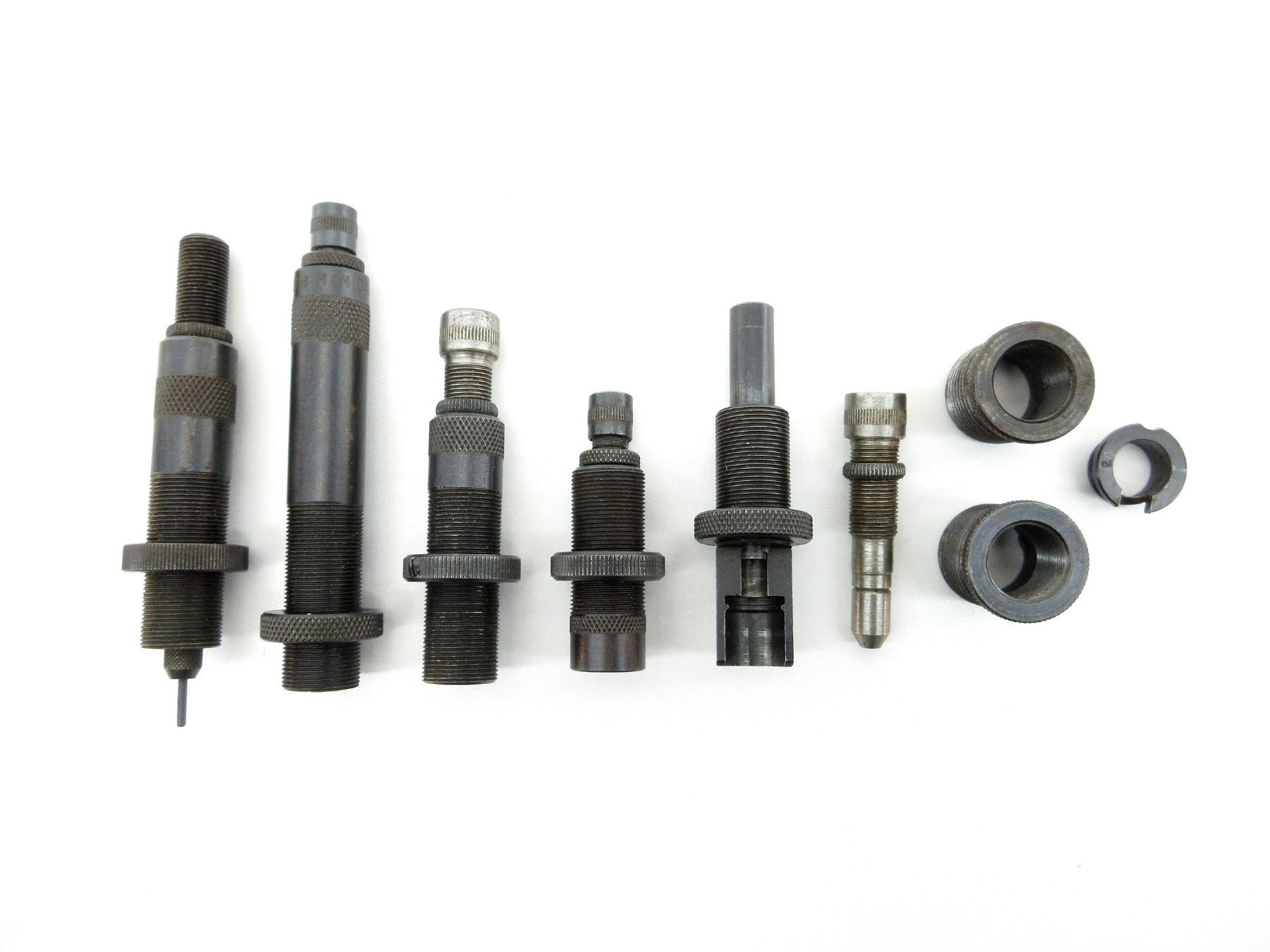 LOT INCLUDES; (5) .310 RELOADING DIES WITH (2) .310 DIE ADAPTERS 7/8 X 14, (1) EXPANDING PLUGS MARKED: "467", (1) #2 SHELL HOLDER & (1) BULLET SEATING SCREW MARKED: "323". SEE PHOTOS.