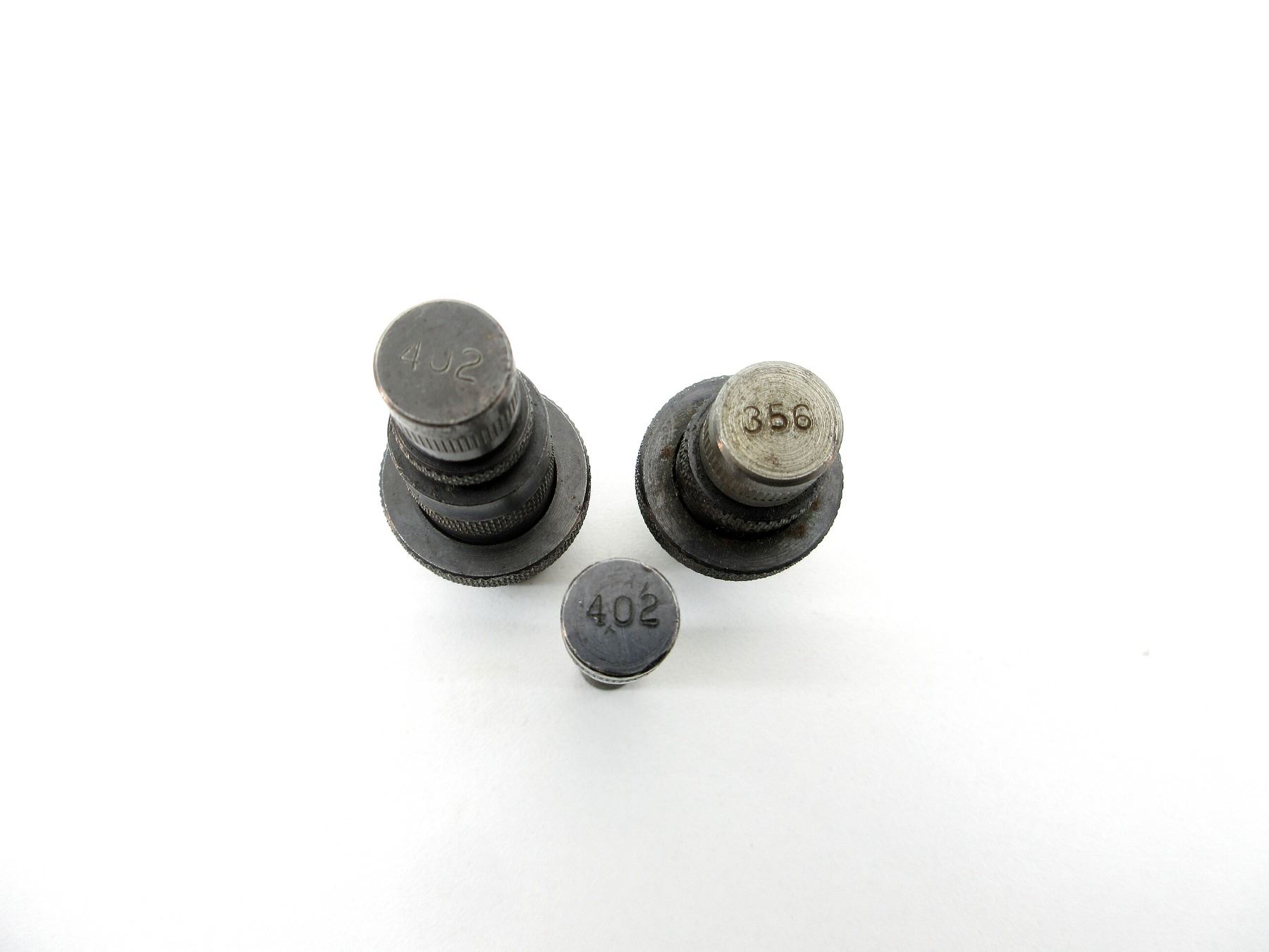 LOT INCLUDES; (5) .310 RELOADING DIES WITH (2) .310 DIE ADAPTERS 7/8 X 14, (1) #17 SHELL HOLDER & (1) EXPANDING PLUG MARKED: "402". SEE PHOTOS.