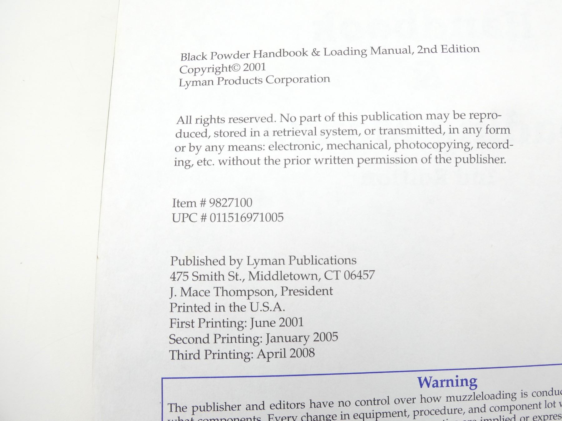 "LYMAN BLACK POWDER HANDBOOK & LOADING MANUAL" SECOND EDITION