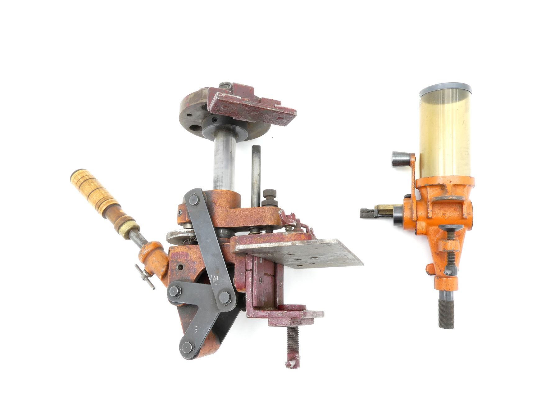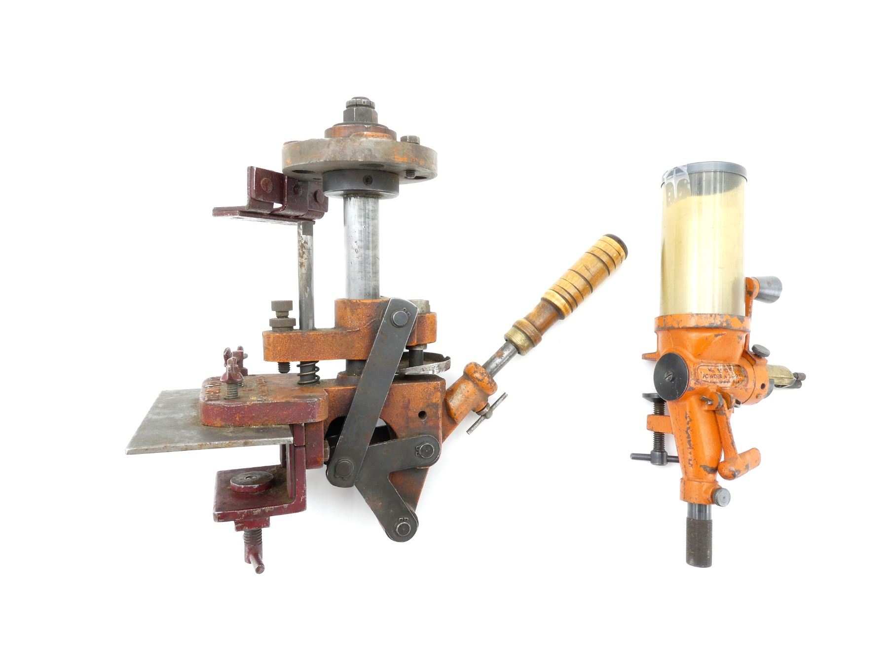 LOT INCLUDES; (1) .310 RELOADING PRESS, MAY REQUIRE ADJUSTMENTS AND/OR MAY NOT BE COMPLETE & (1) LYMAN / IDEAL NO. 55 POWDER MEASURE, MAY REQUIRE ADJUSTMENTS AND/OR MAY NOT BE COMPLETE. SEE PHOTOS.
