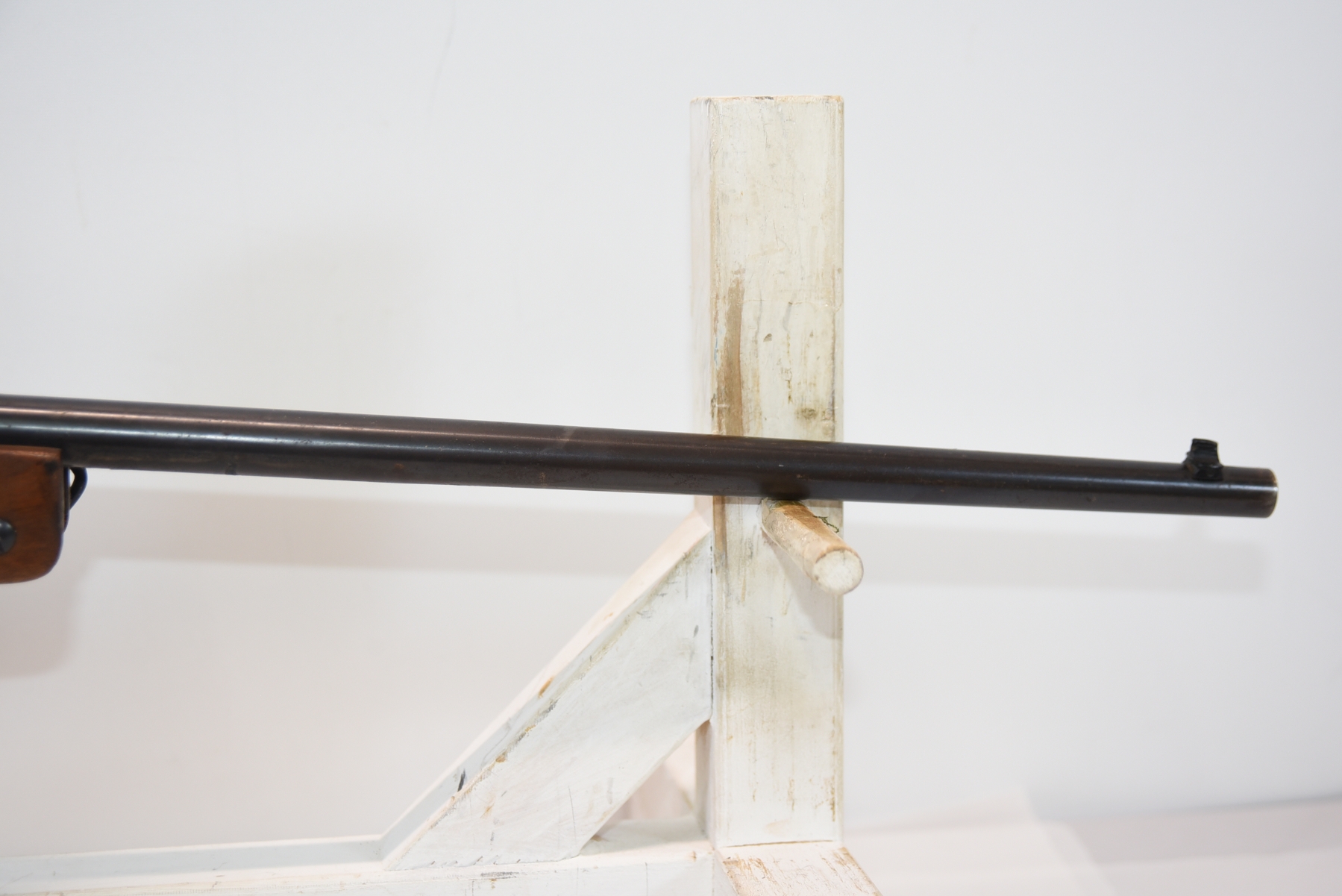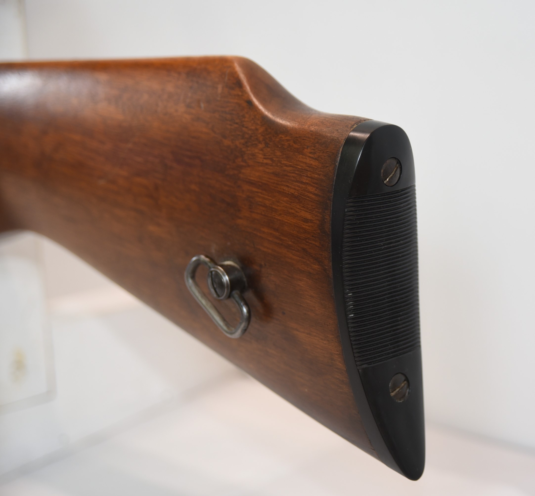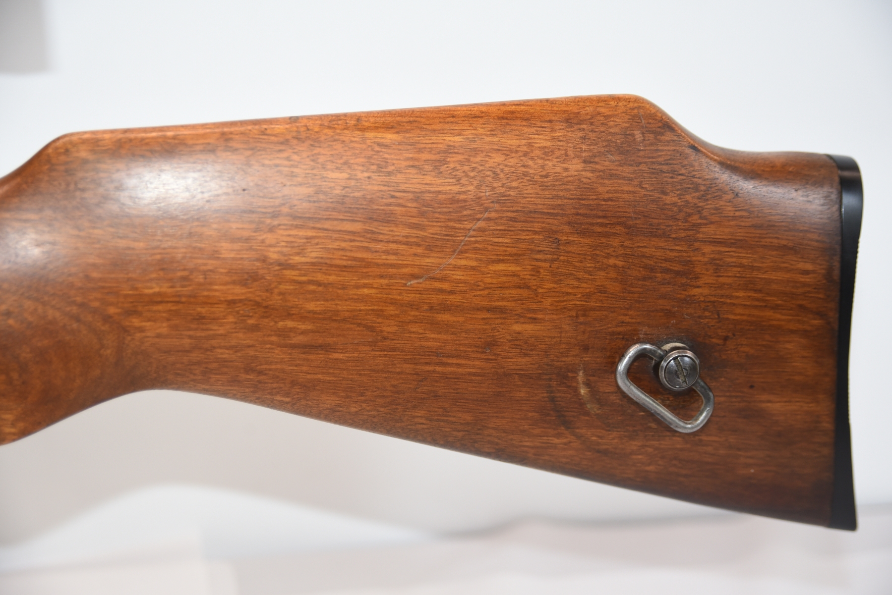 Wood stock shows front folding plastic of fore is broken, there are light scratches & scuffs; condition is good.