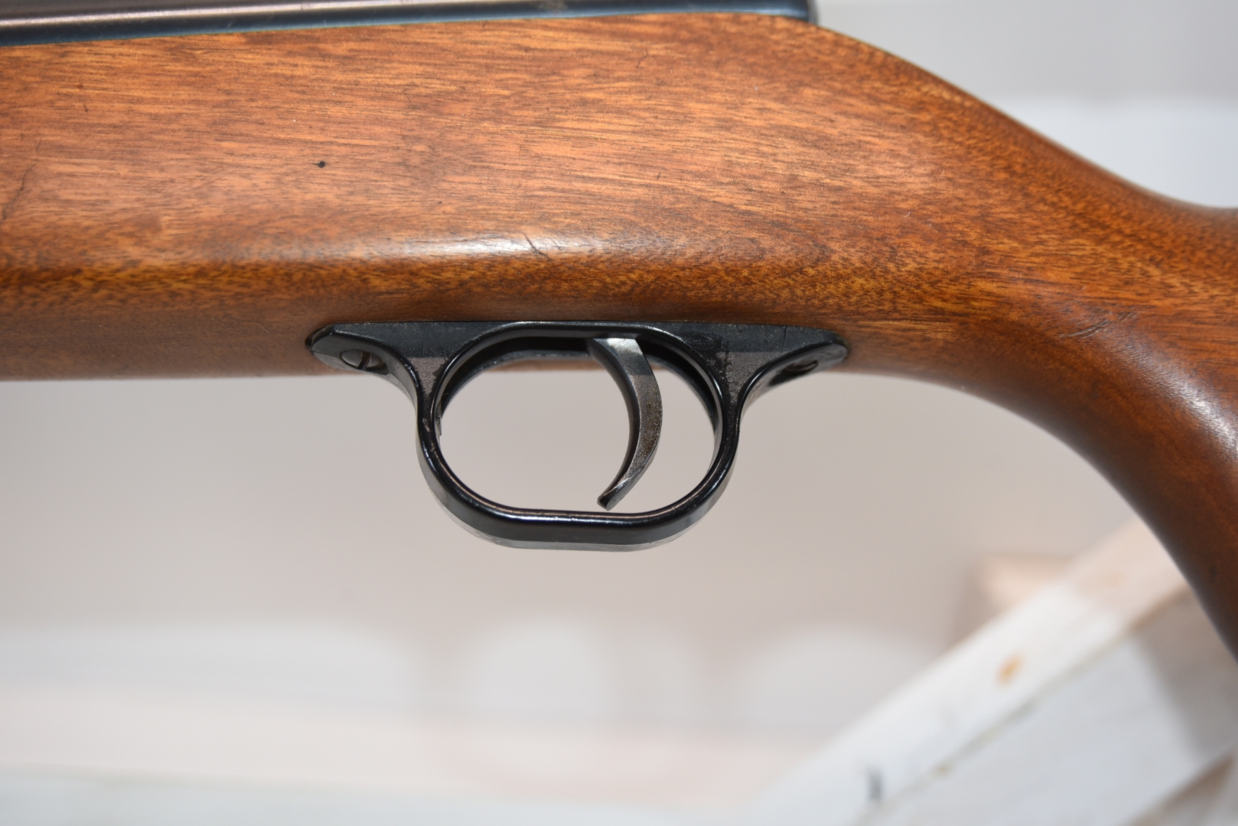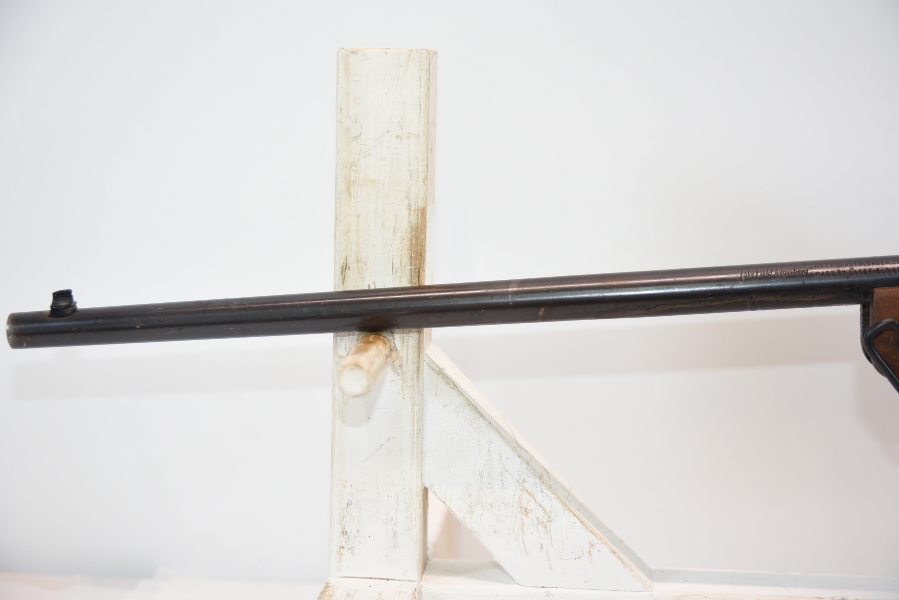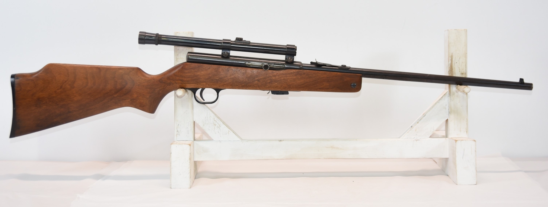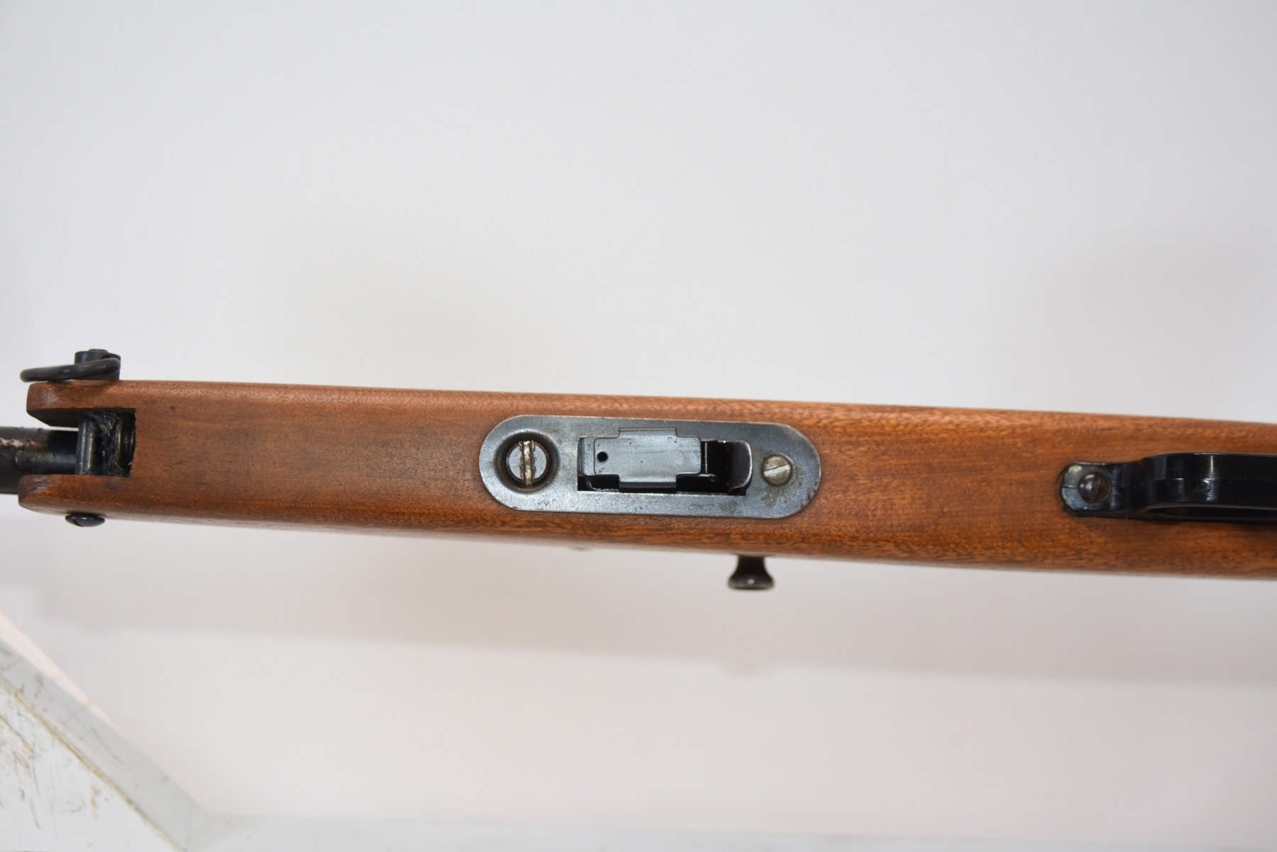 Wood stock shows front folding plastic of fore is broken, there are light scratches & scuffs; condition is good.