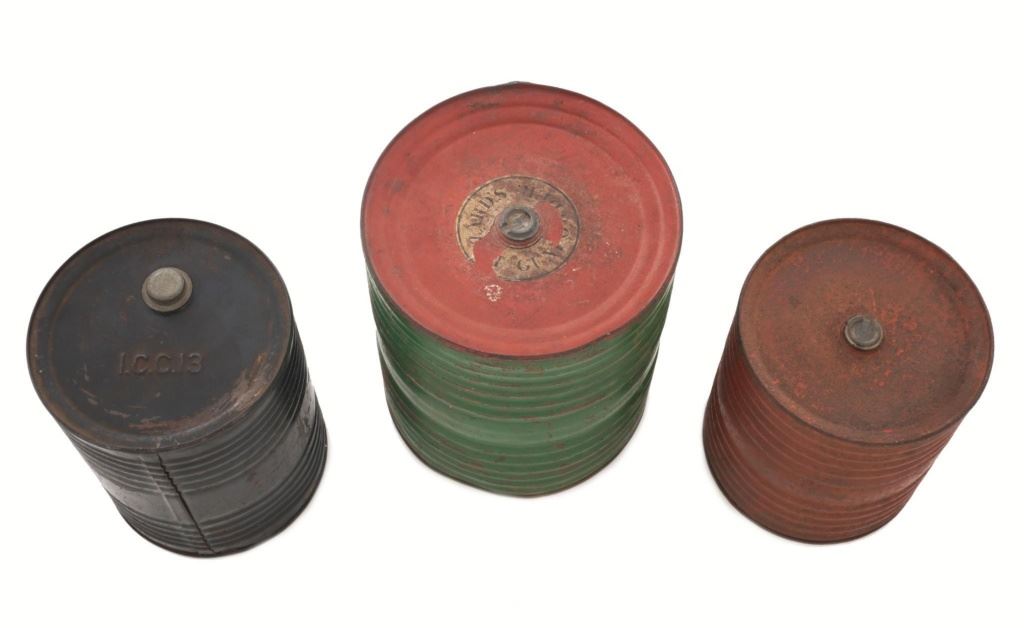 Large of Three (3) Circa Early 1900s Metal Gunpowder Storage Containers