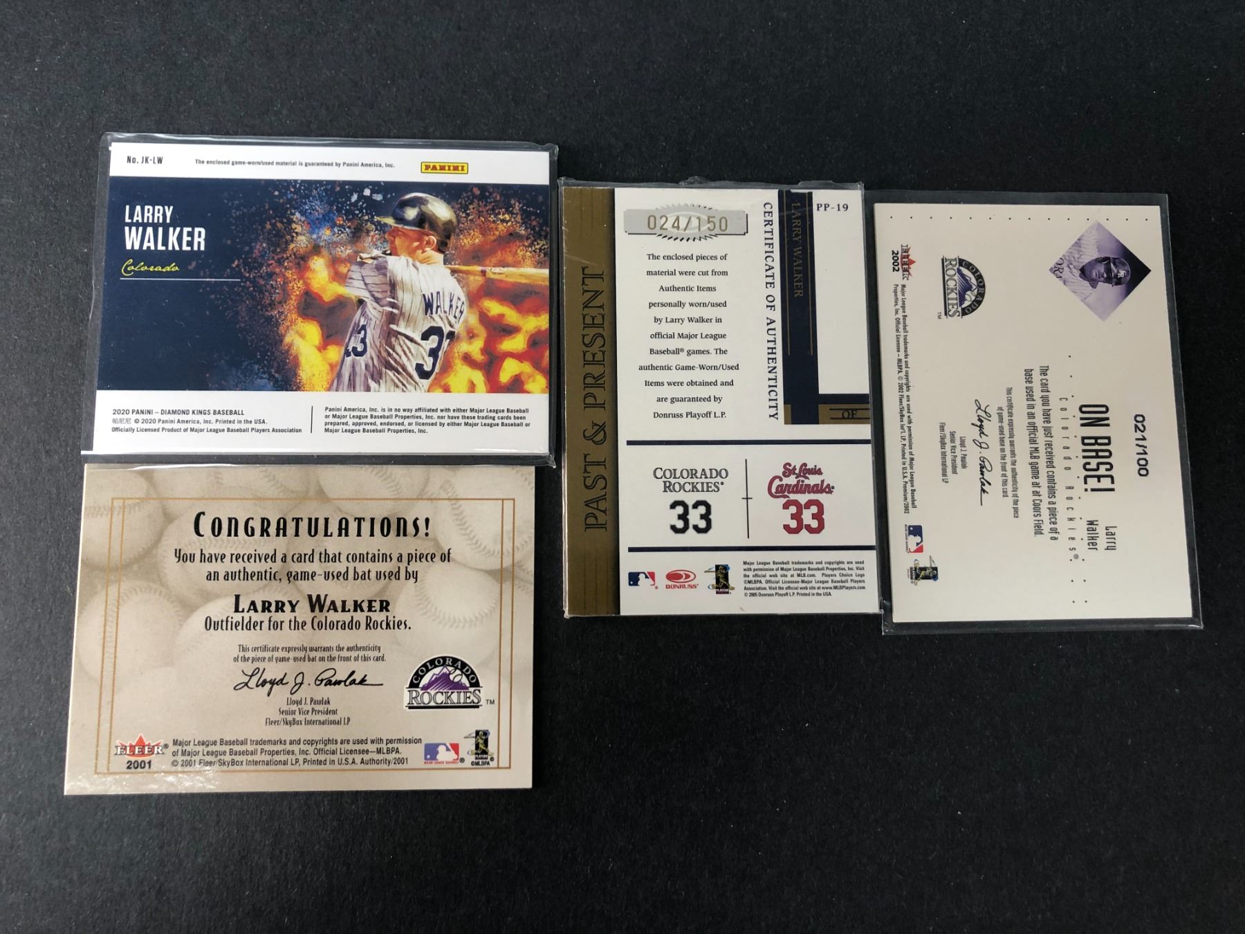 Canadian born Larry Walker lot of 4 game used cards