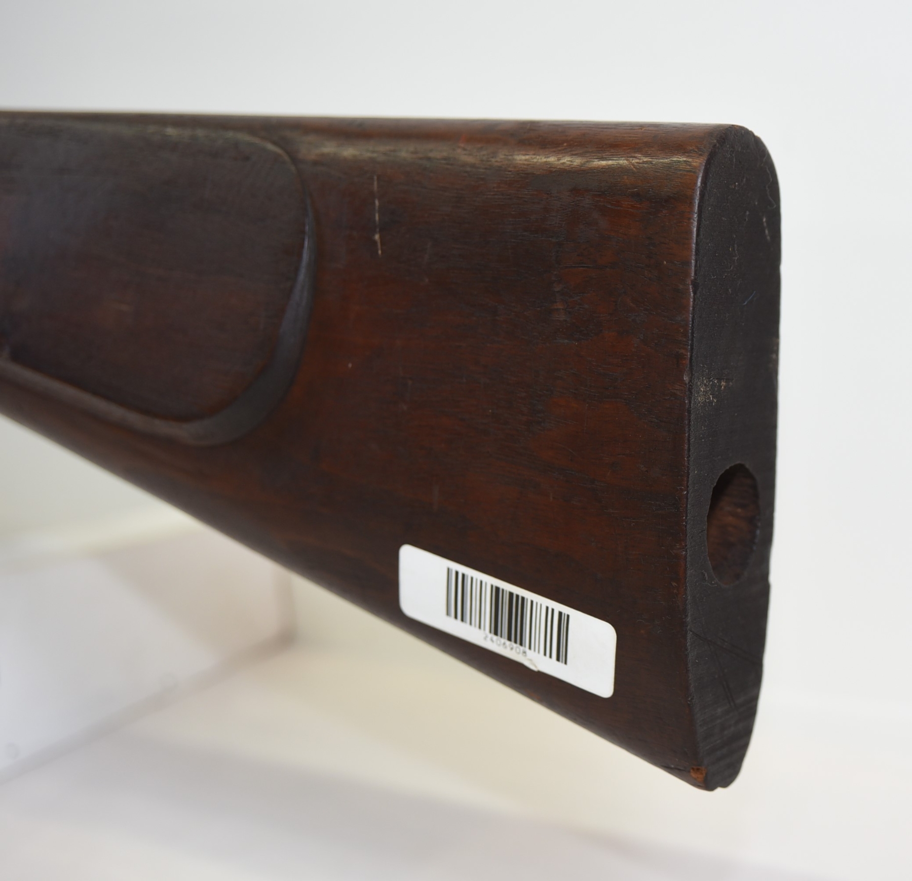 Wood stock shows some scratches, scuffs, dents, missing butt plate; condition is fair.