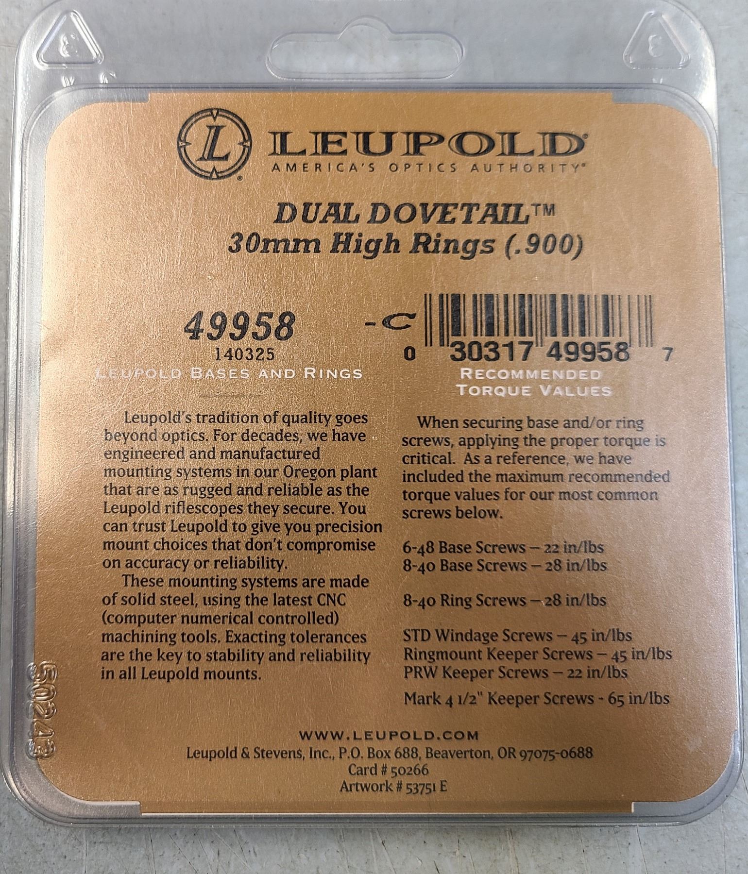 Leupold Rings DD Dual Dovetail 30 mm High Height Mattey - NEW