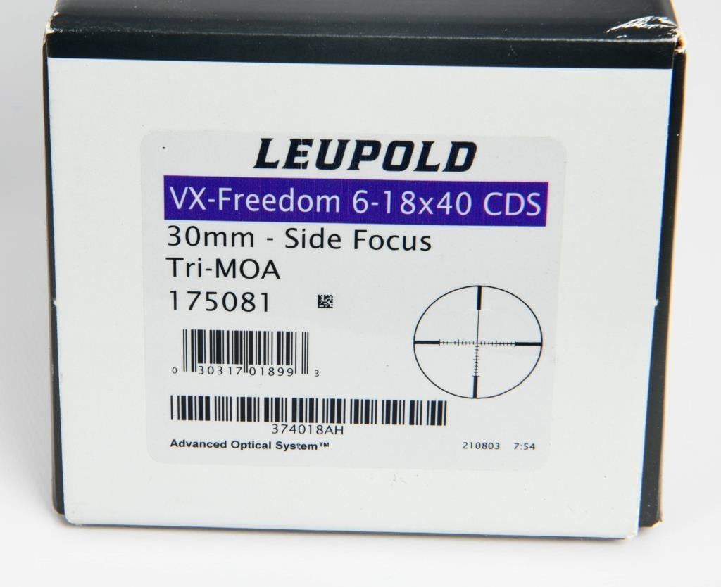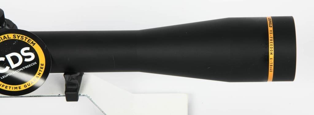 Leupold VX-Freedom 6-18x40mm Rifle Scope, 30 mm Tube, Second Focal Plane (SFP) 175081, Color: Black, Tube Diameter: 30 mm- This riflescope comes to you in pre owned super condition like new, comes with the box and paperwork and the Leupold riflescope neoprene cover. please refer to pictures when bidding this lot! Mount this Leupold VX-Freedom 6-18x40mm Rifle Scope to upgrade your weapon's sighting capabilities and your accuracy at longer ranges. These Rifle Scopes developed by Leupold feature the Twilight Light Management System that boosts light transmission for clear views even in darker environments. The Leupold VX-Freedom 6-18x40mm Rifle Scope is rugged yet lightweight with scratch-resistant lenses and fogproof and waterproof construction so that you can use it on the hunting grounds rain or shine