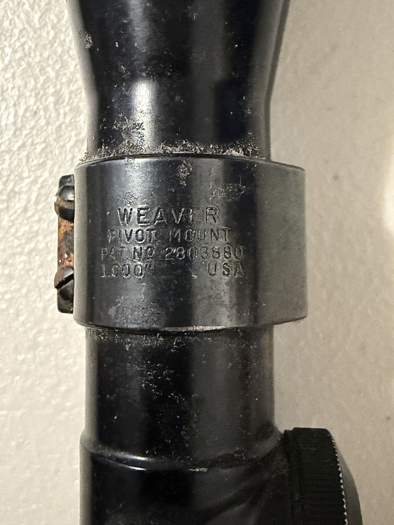 Includes Weaver pivot mount (Pat. No. 2808380)
