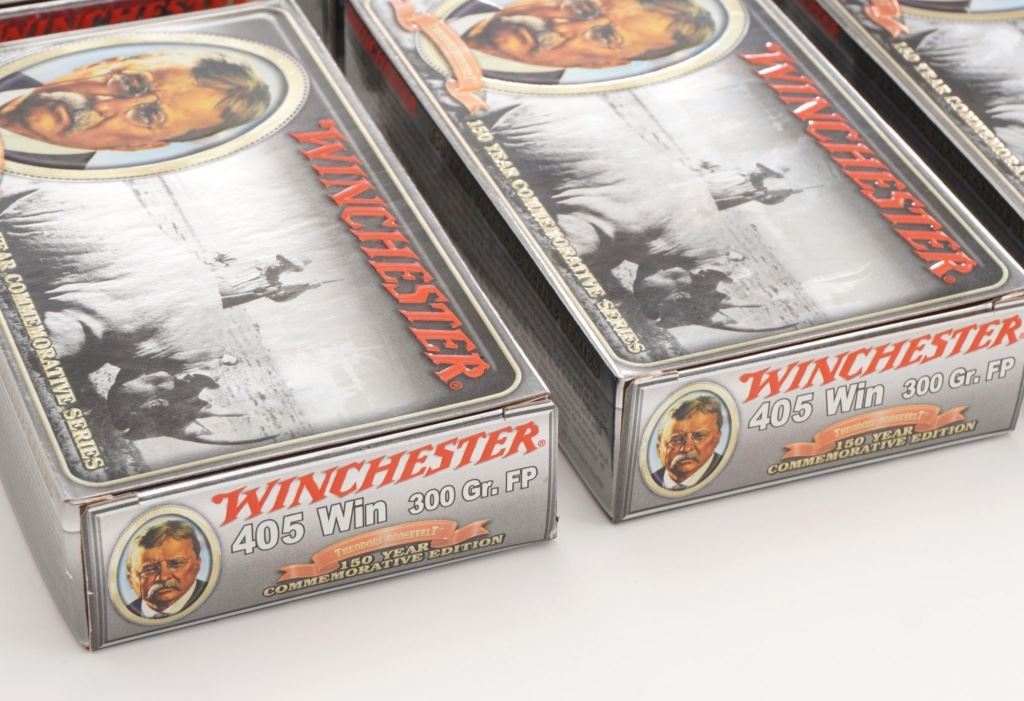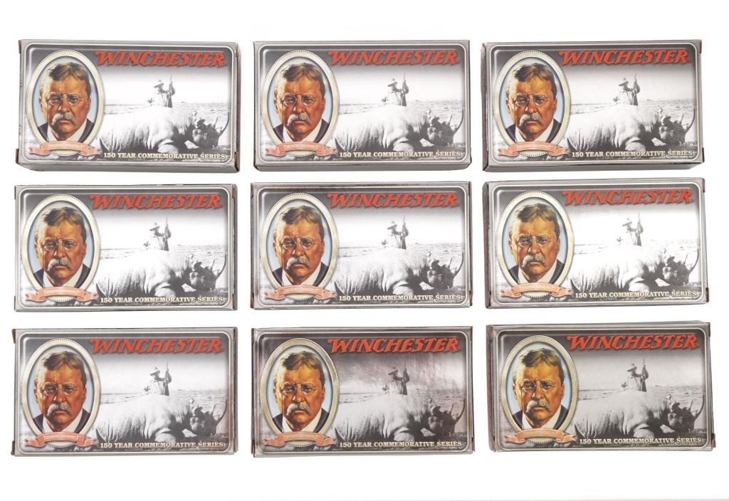 Lot of Nine (9) Boxes of Limited Edition .405 Winchester Teddy Roosevelt 150Year Commemorative