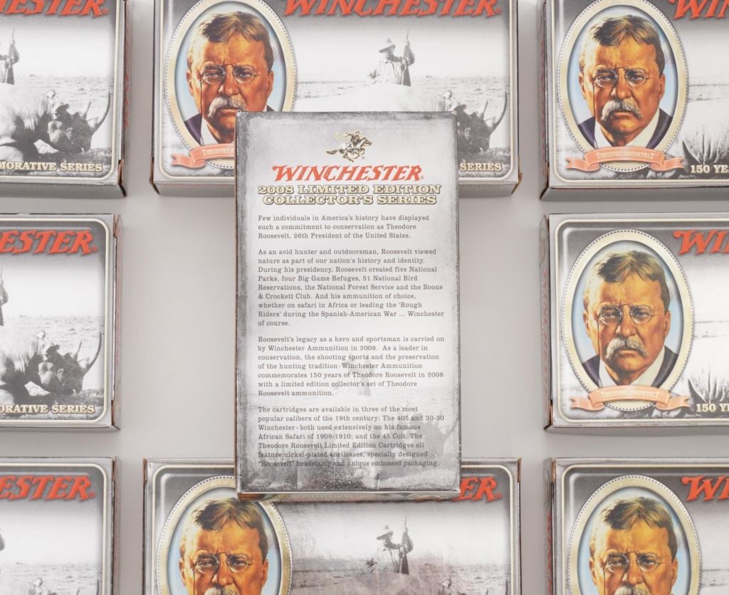 with images of Teddy Roosevelt. 20-rounds per box. Originally manufactured in