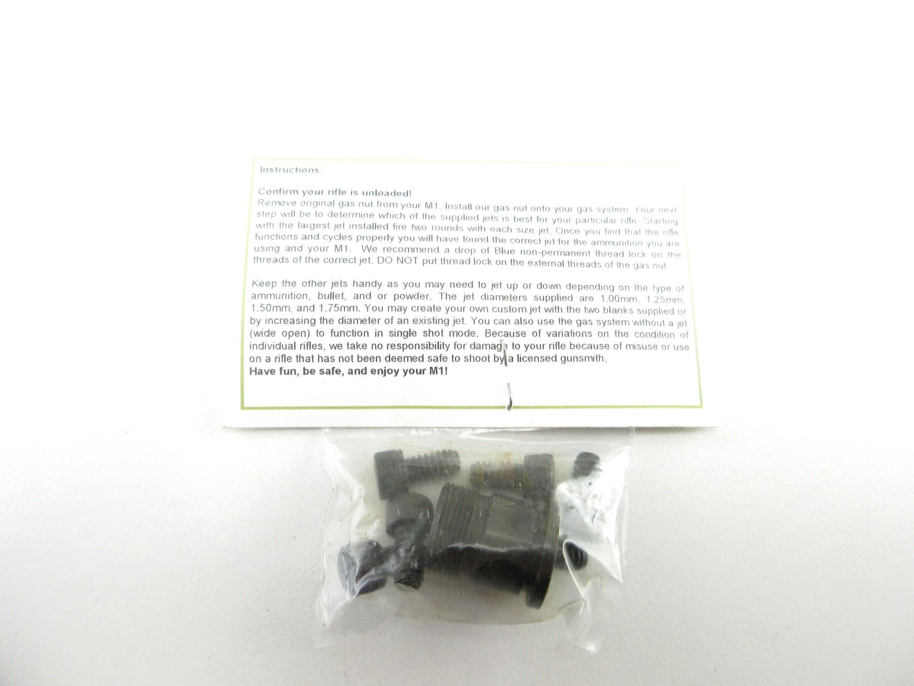 (1) GAS SYSTEM INCLUDES; GAS PLUG, (5) VARIOUS SIZE SCREWS, APPEARS NEW OLD STOCK IN ORIGINAL PACKAGING. MAY REQUIRE FITTING. SEE PHOTOS.