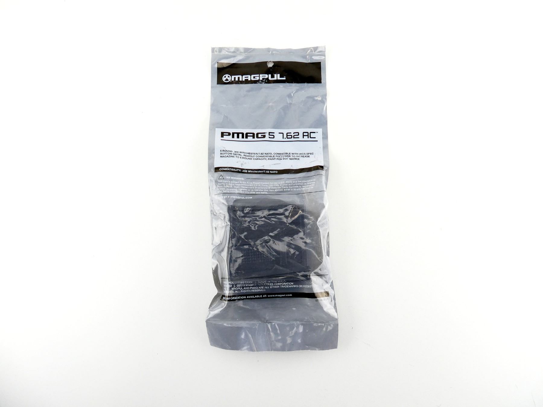 (1) 7.62 NATO / .308 WIN MAG, 5 RNDS, BLACK POLYMER CONSTRUCTION, MARKED: "PMAG 5", "7.62X51", "7.62 AC", ETC., APPEARS NEW OLD STOCK IN ORIGINAL SEALED PACKAGING. SEE PHOTOS. PAL REQUIRED.