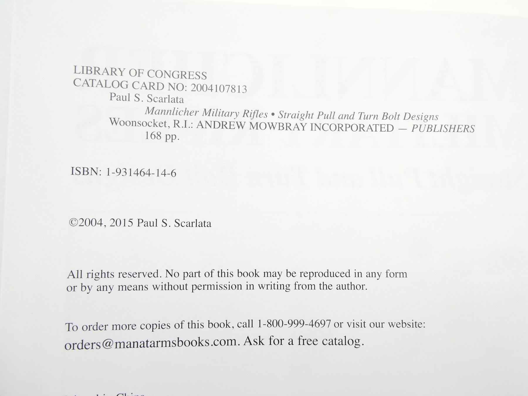 "MANNLICHER MILITARY RIFLES, STRAIGHT PULL AND TURN BOLT DESIGNS, A COLLECTOR'S GUIDE" BOOK