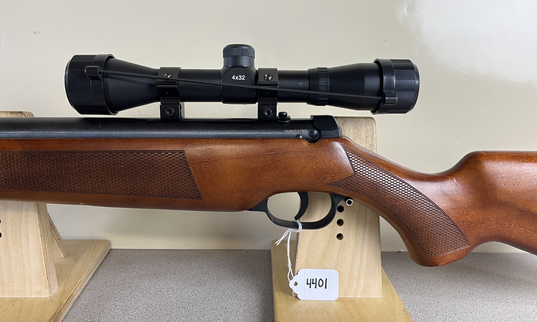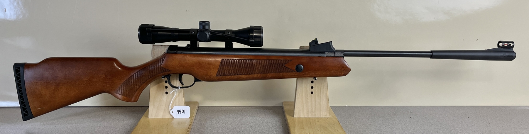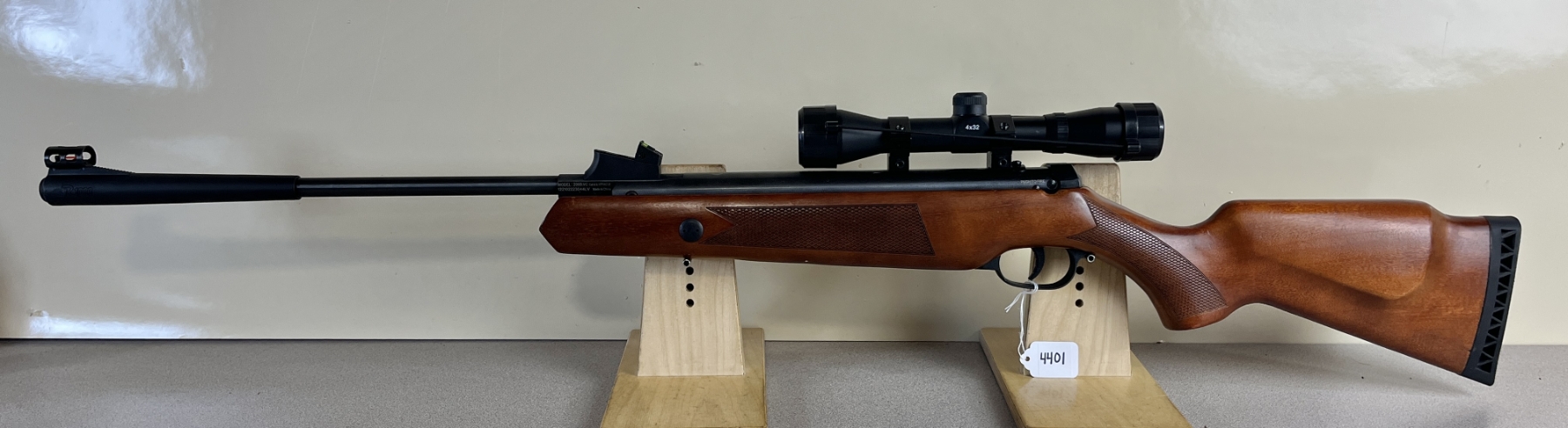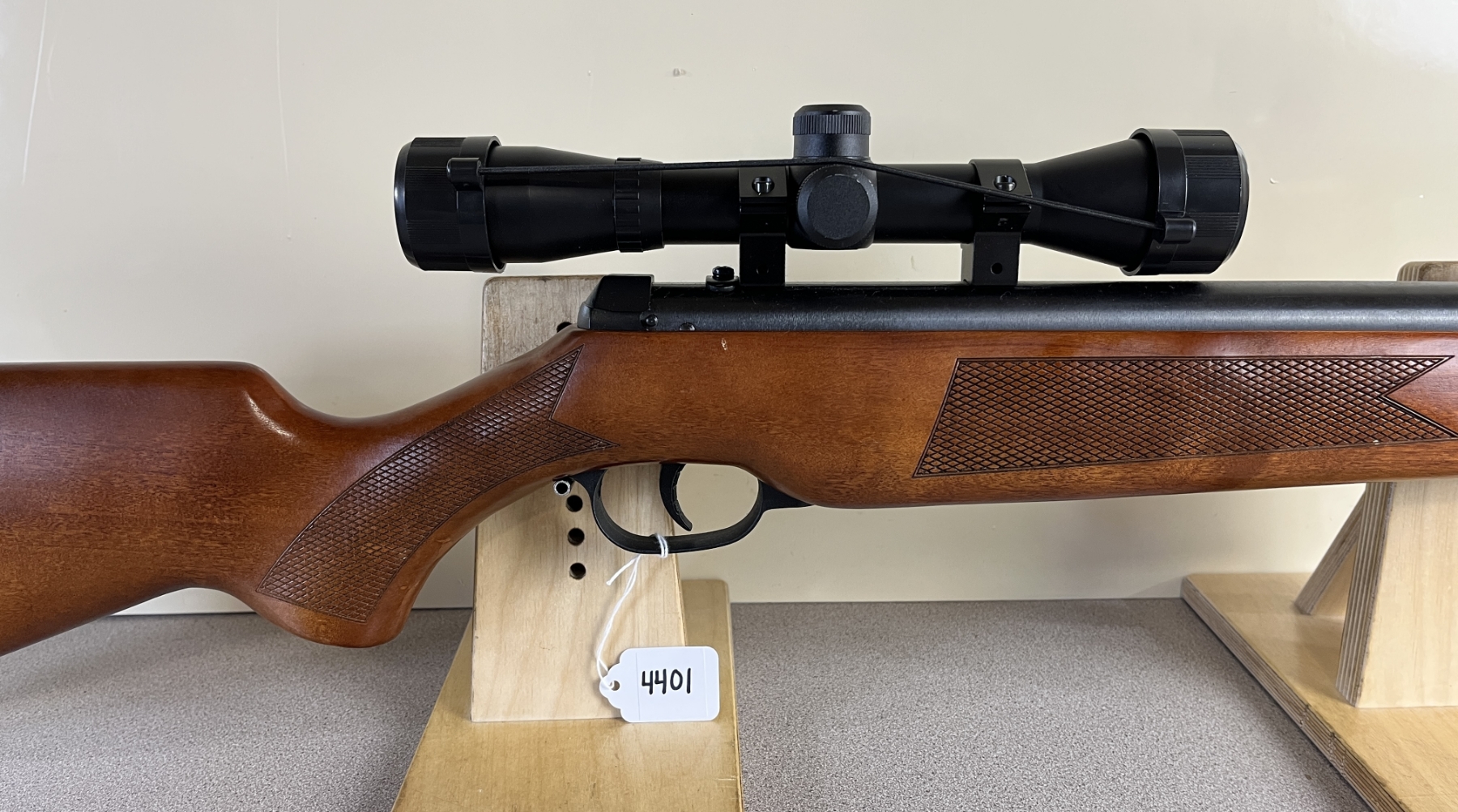 CONDITION: G OVERALL INCL BORE. SPECS: >500 FPS. 18 1/2IN BBL W/ FIBRE OPTIC SIGHTS. EXTRAS: MARKSMAN 4X32 SECOND. CLEAR LENS. CROSSHAIR RETICLE. S/N: 122102223044LV.