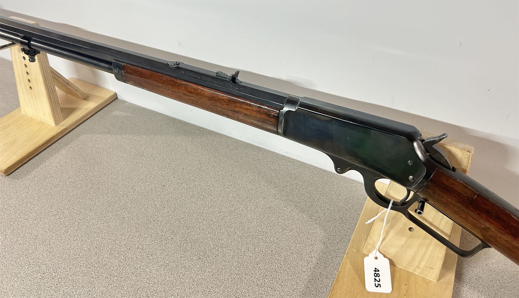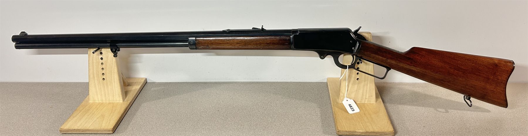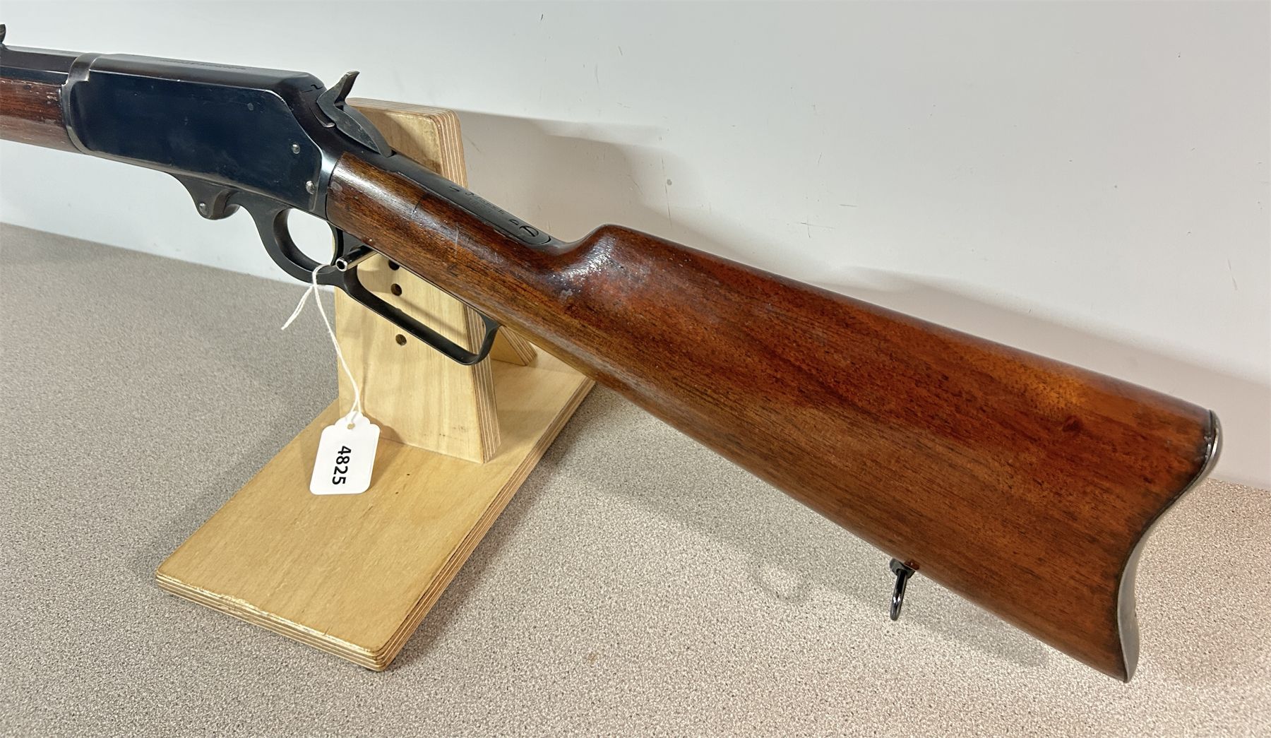CONDITION: G OVERALL. SMALL CRACK REPAIRED IN FORESTOCK. REPAIR AT WRIST. MINOR FRECKLING ON RECEIVER. BORE VG. RE-BLUED. SPECS: 26 INCH OCTAGON BARREL. EXTRAS: NONE. S/N: 118823.