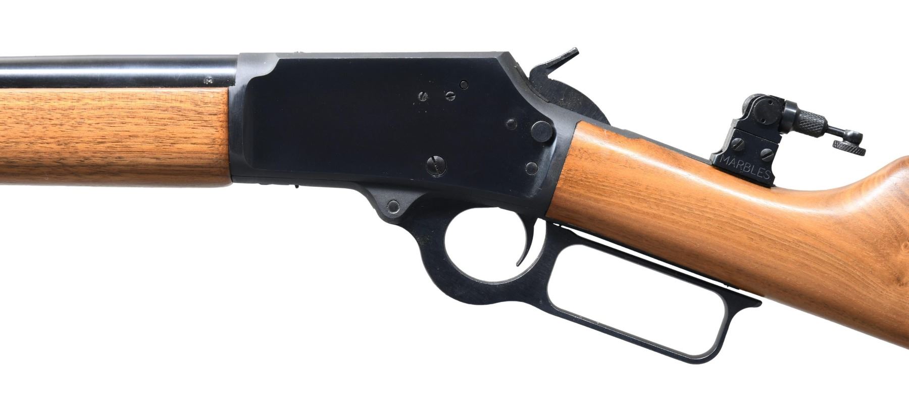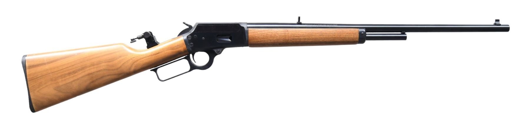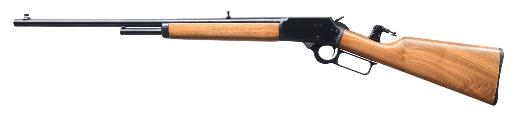 Cal. 25-20 Win. S# CL250632. Bbl. 22" rnd. with cut rifling. Bead front sight, folding leaf rear rear sight, with Marbles tang sight. 2/3 length tubular mag. Blue finish. Action has crossbolt safety. Walnut forearm and straight grip stock with original buttplate. CONDITION: near excellent retaining over 98% original blue. Original wood finish shows scattered scratches and marks. Bright near excellent bore. (25-3597/DS). MODERN. $600-900.