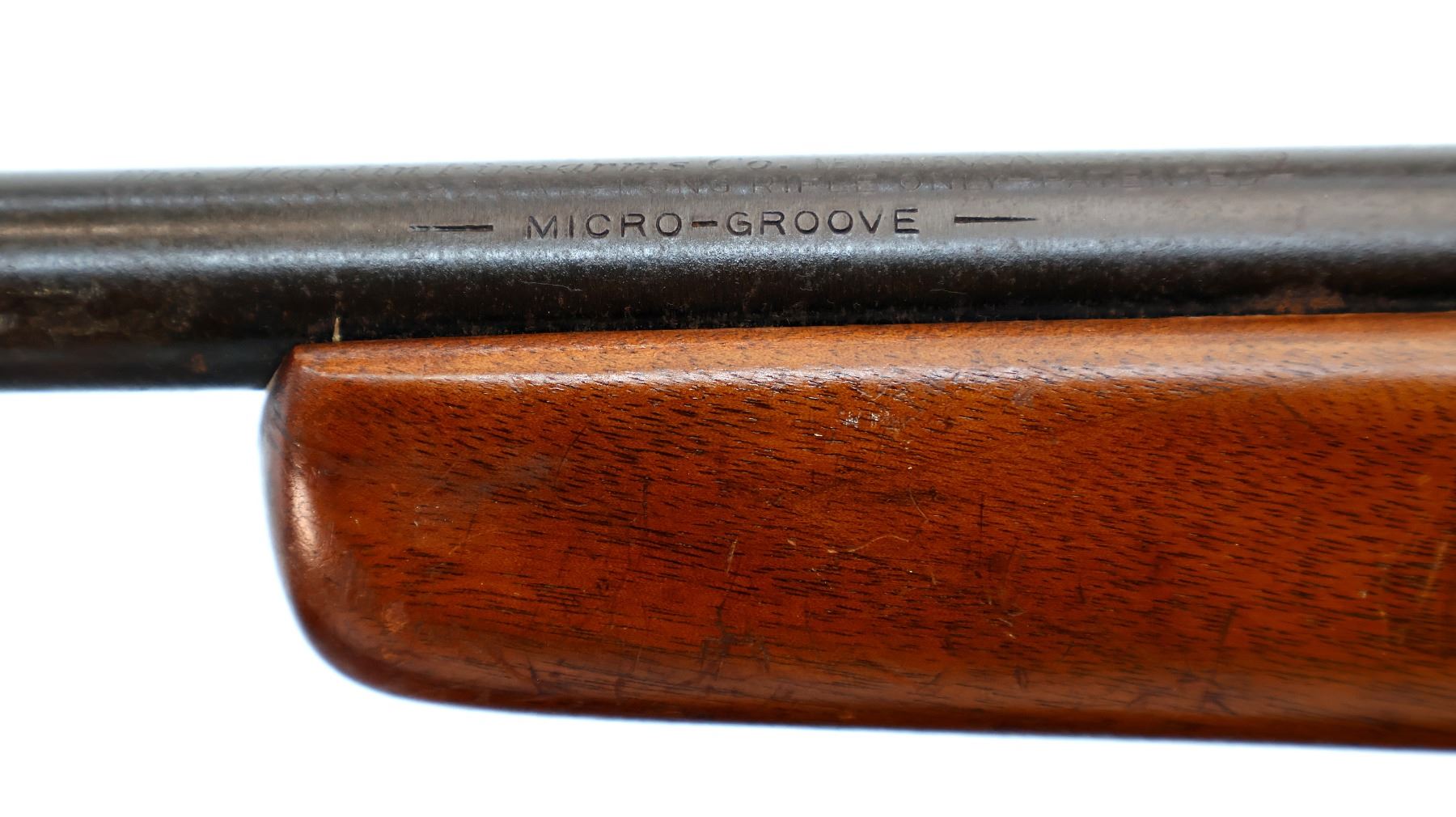 Wear: Metal finish turning brown with pitting, light rust, scratches, handling marks and wear. Stock shows marks, scratches and wear.